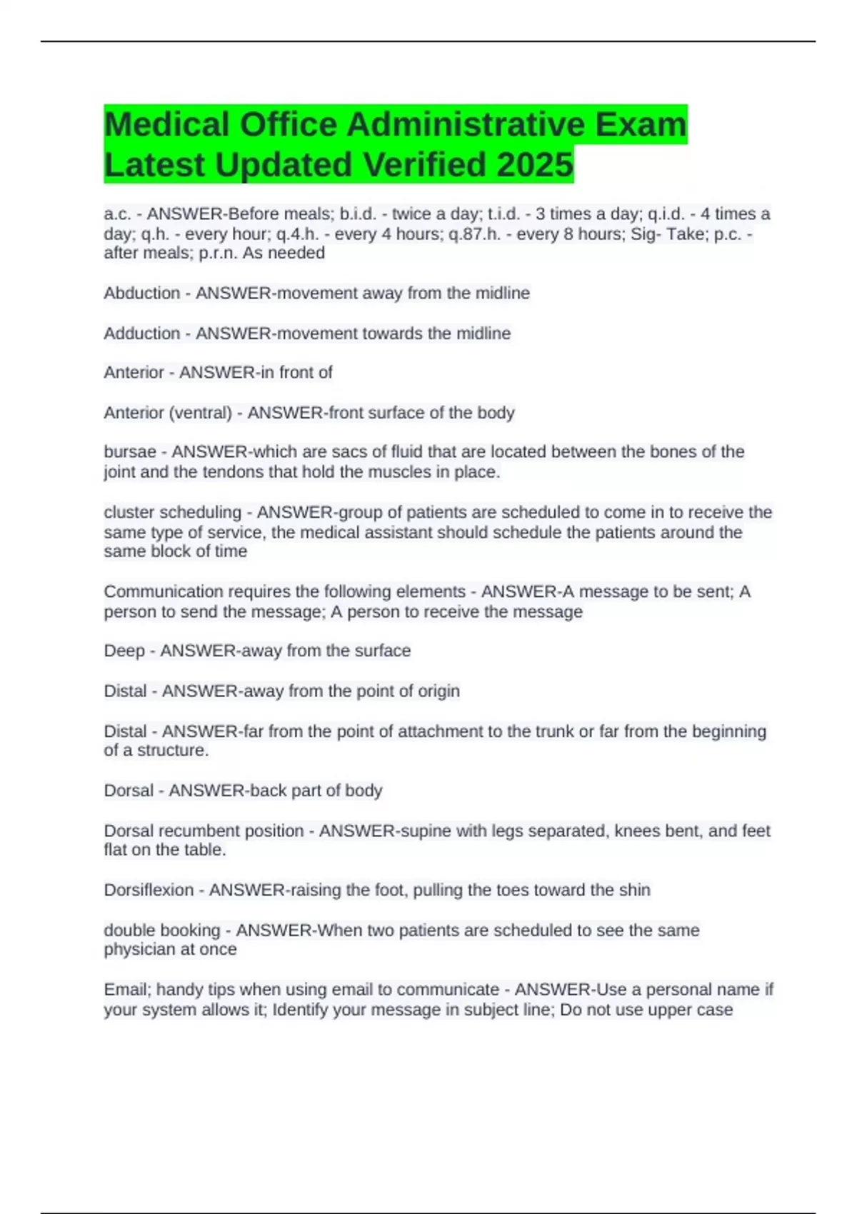 Medical Office Administrative Exam Latest Updated Verified 2025