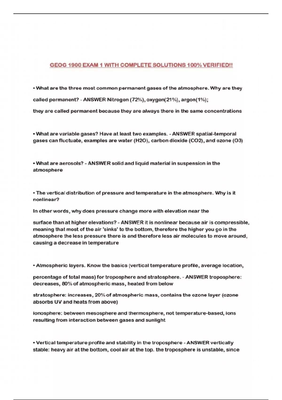 GEOG 1900 EXAM 1 WITH COMPLETE SOLUTIONS 100% VERIFIED!!..