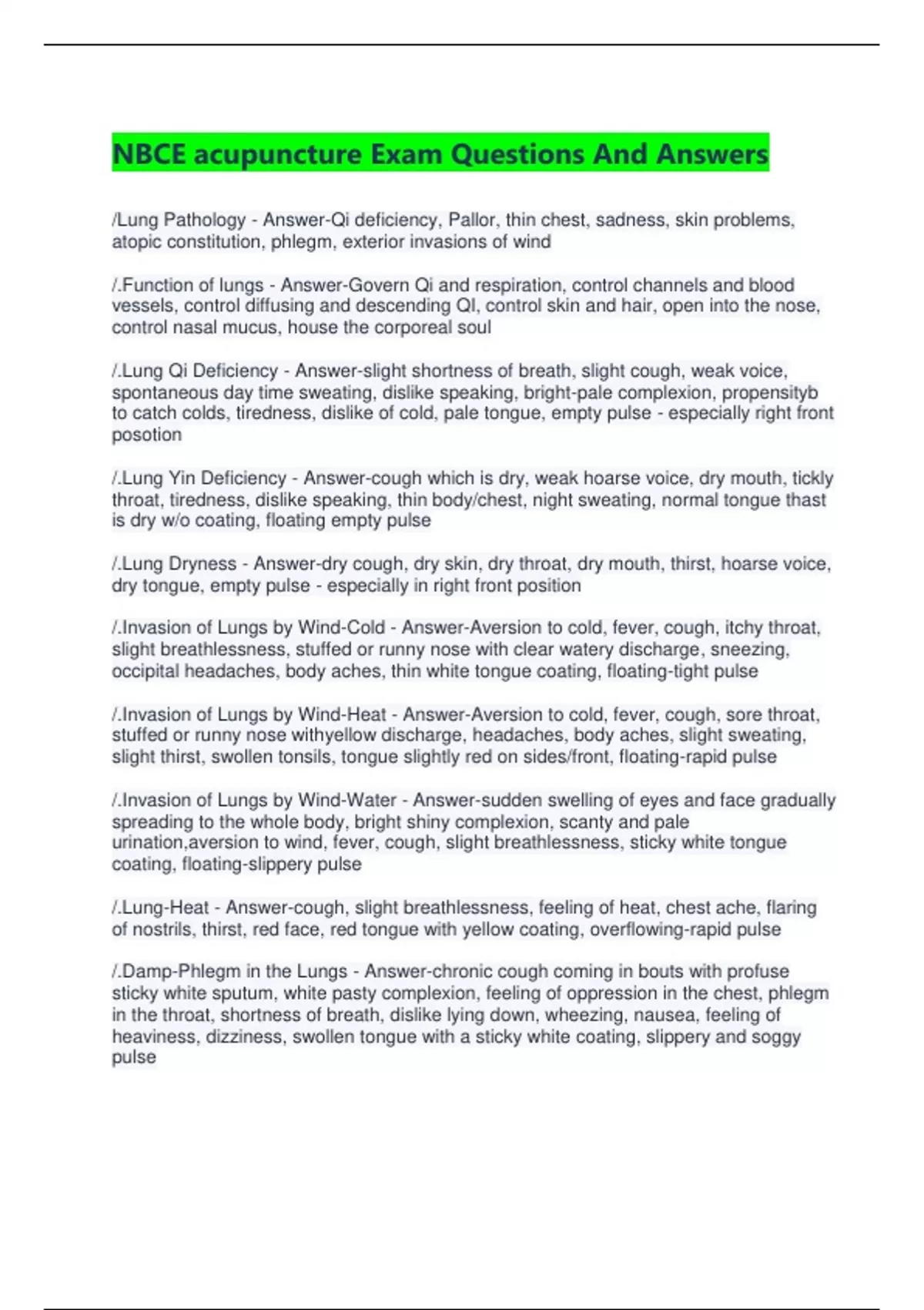 /.Lung-Heat - Answer-cough, slight breathlessness, feeling of heat, chest ache, flaring