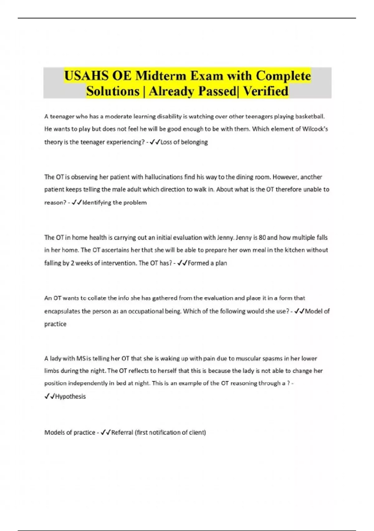 USAHS OE Midterm Exam with Complete Solutions | Already Passed| Verified