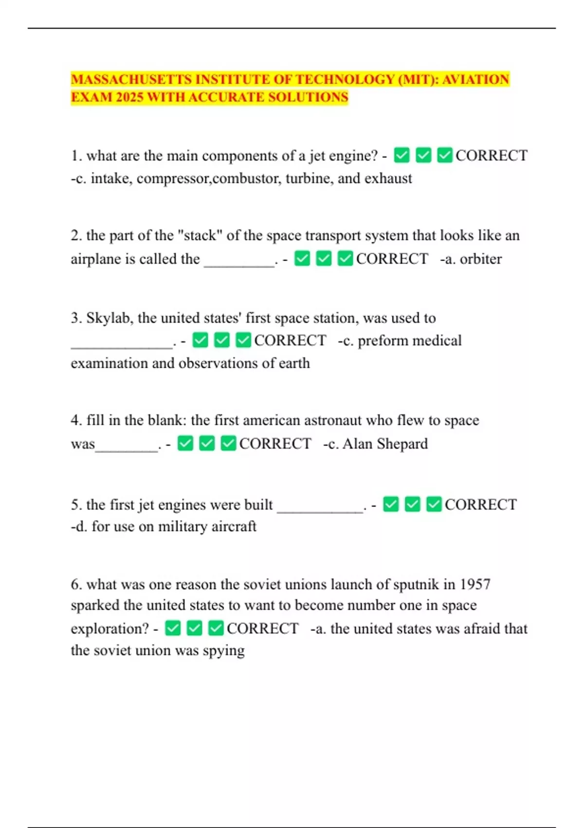 9. what event ended the space race? - CORRECT -a. neil