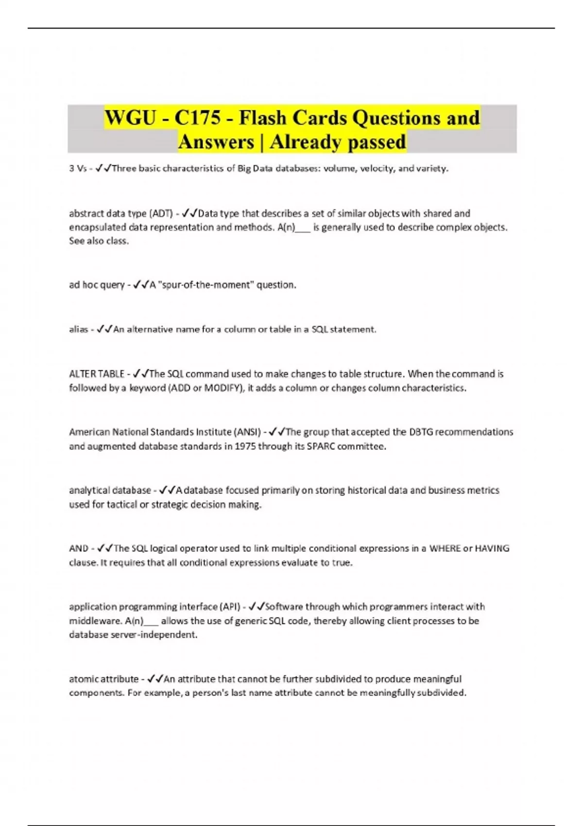 WGU - C175 - Flash Cards Questions and Answers | Already passed