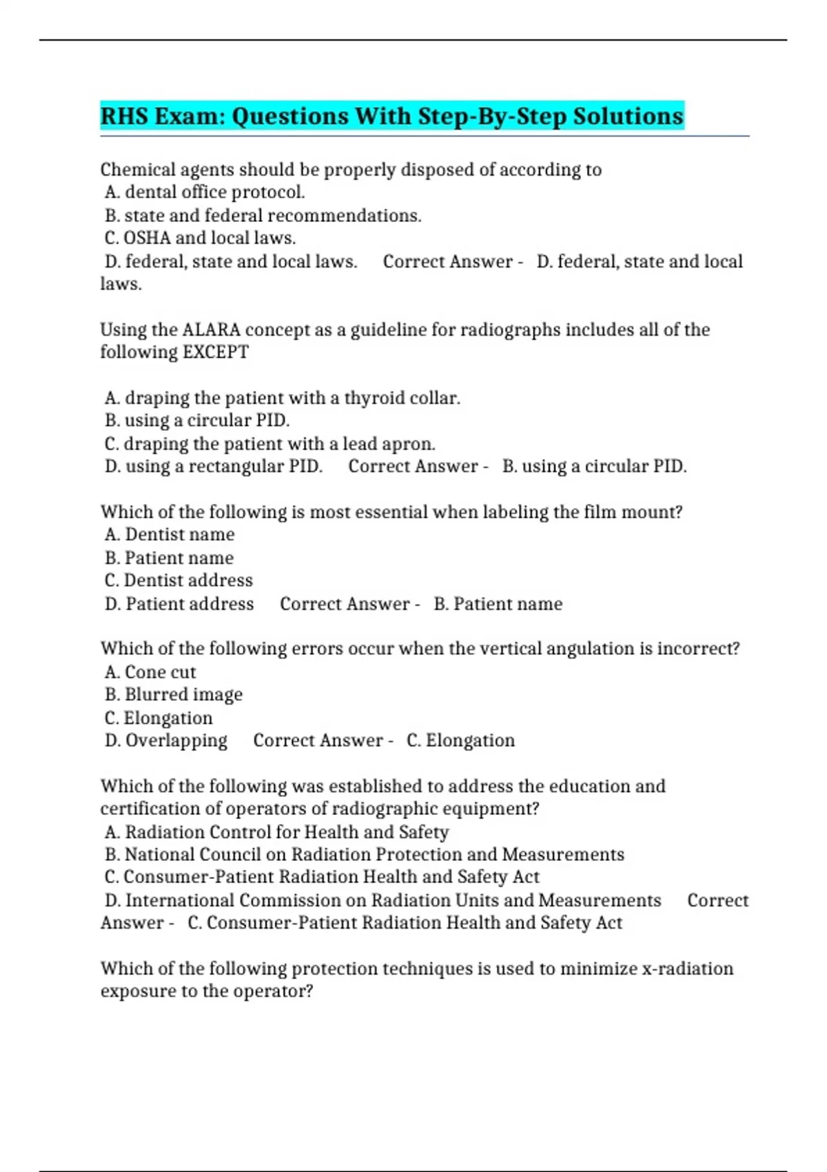 D. sterilization. Correct Answer - B. using individual barrier envelopes.