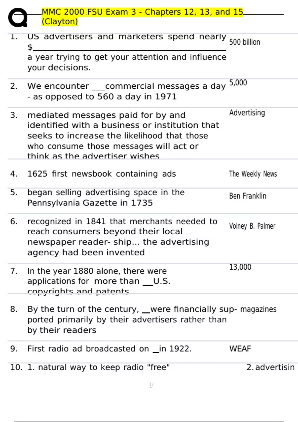 10. 1. natural way to keep radio "free" 2. advertisin