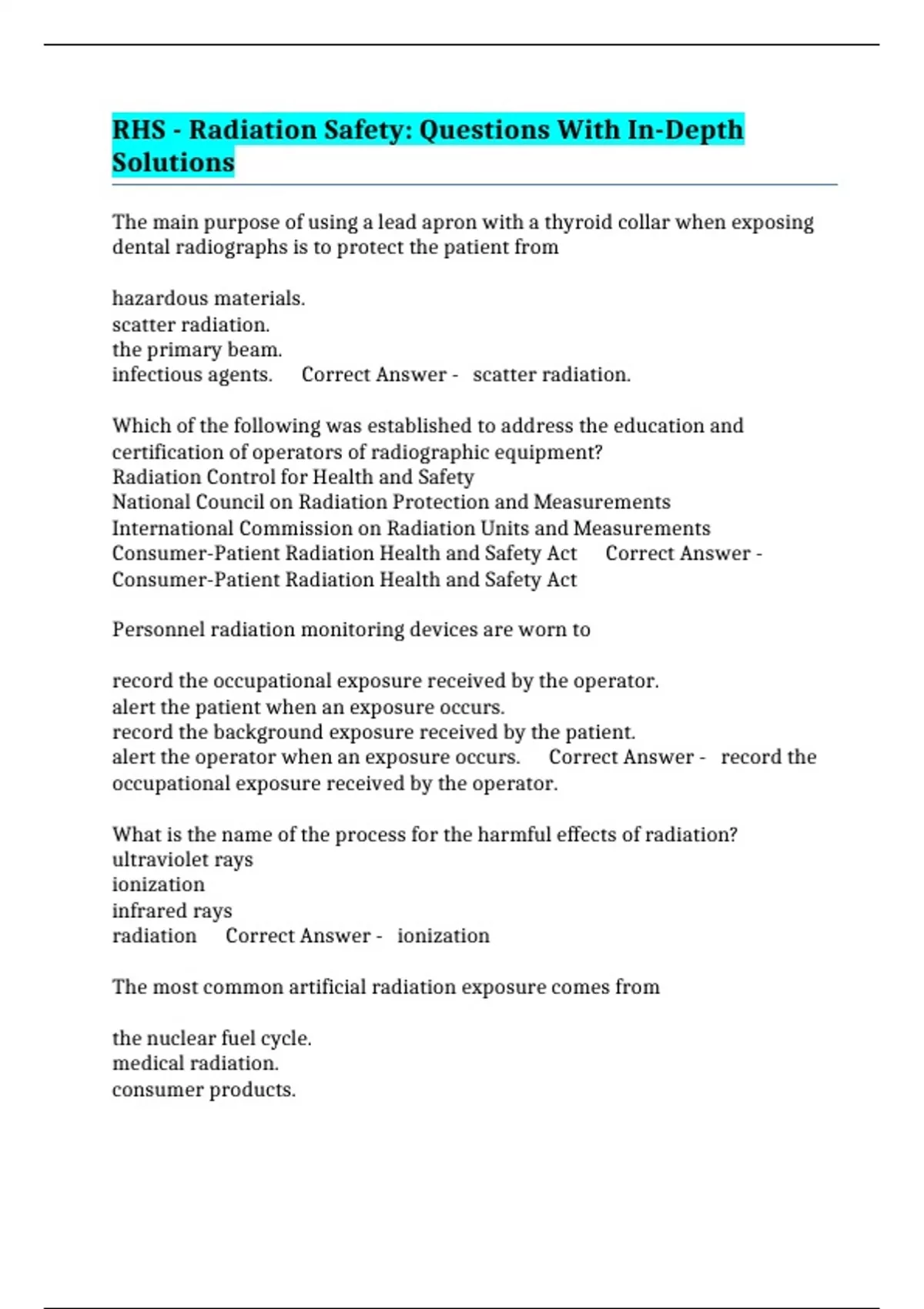 , atomic weapon fallout. Correct Answer - medical radiation.