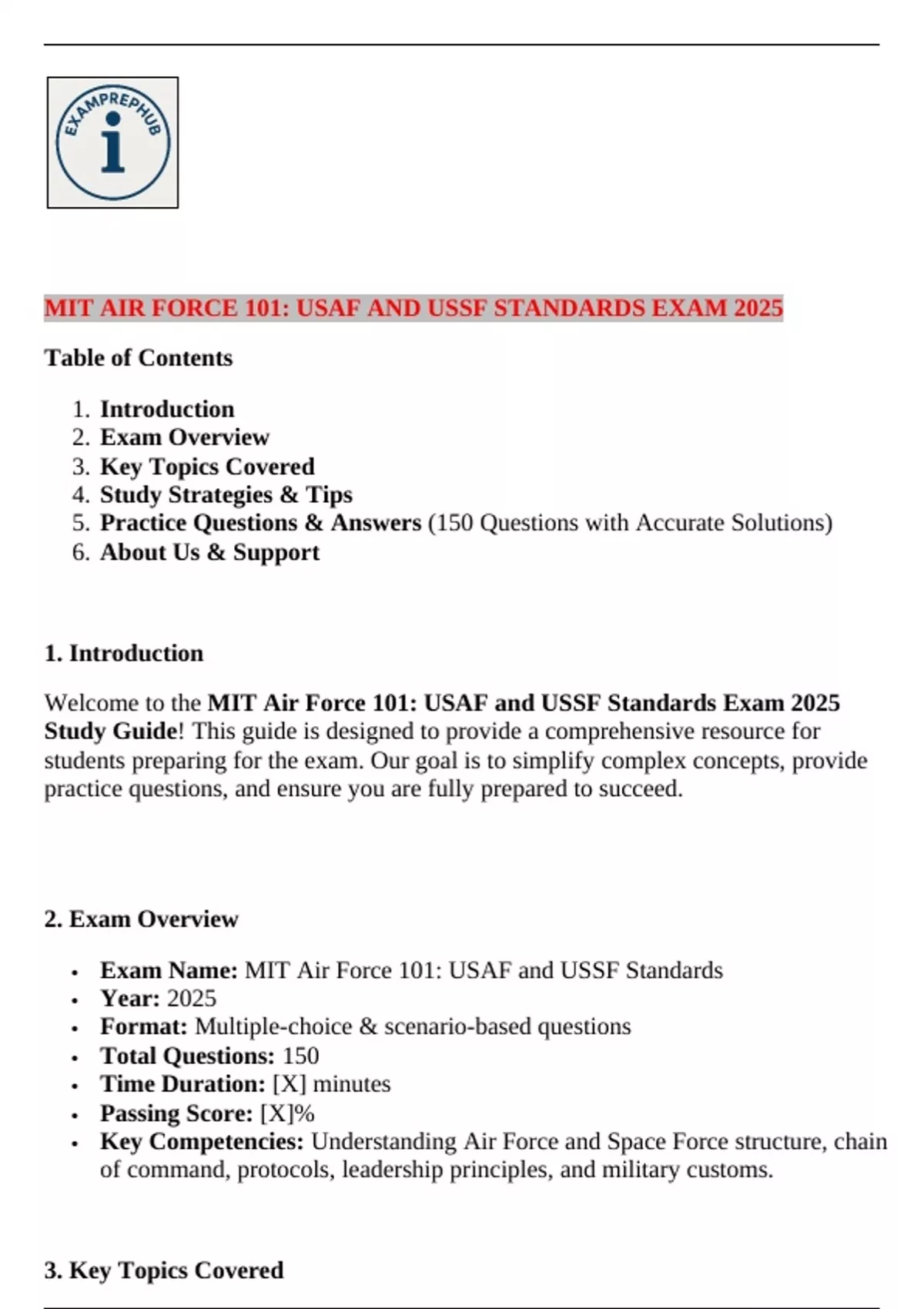 Study Guide! This guide is designed to provide a comprehensive resource for