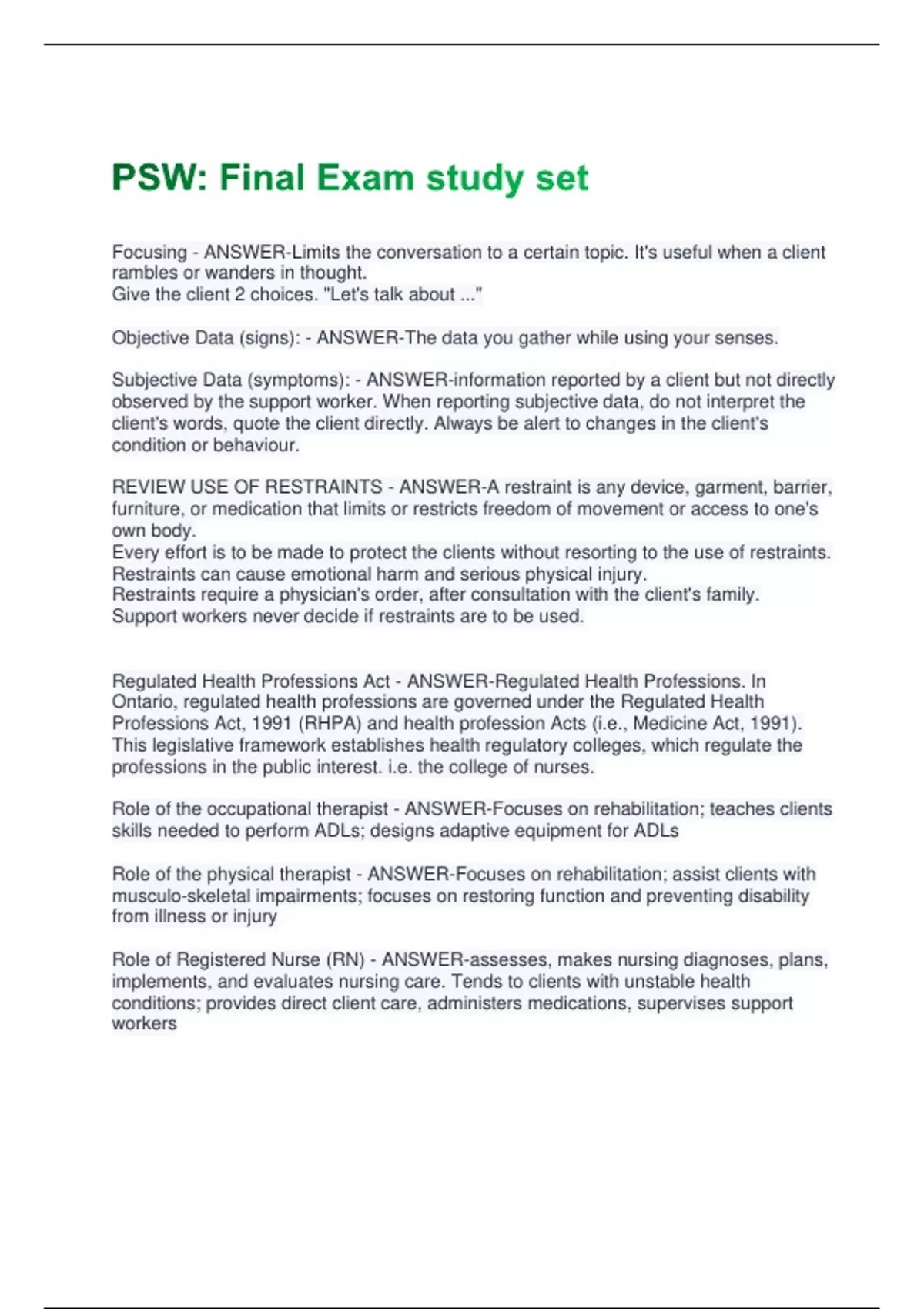 Regulated Health Professions Act - ANSWER-Regulated Health Professions. In