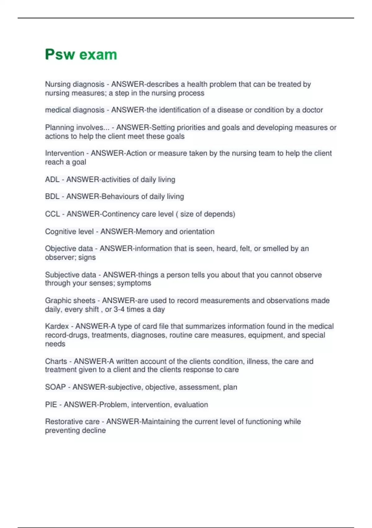 SOAP - ANSWER-subjective, objective, assessment, plan