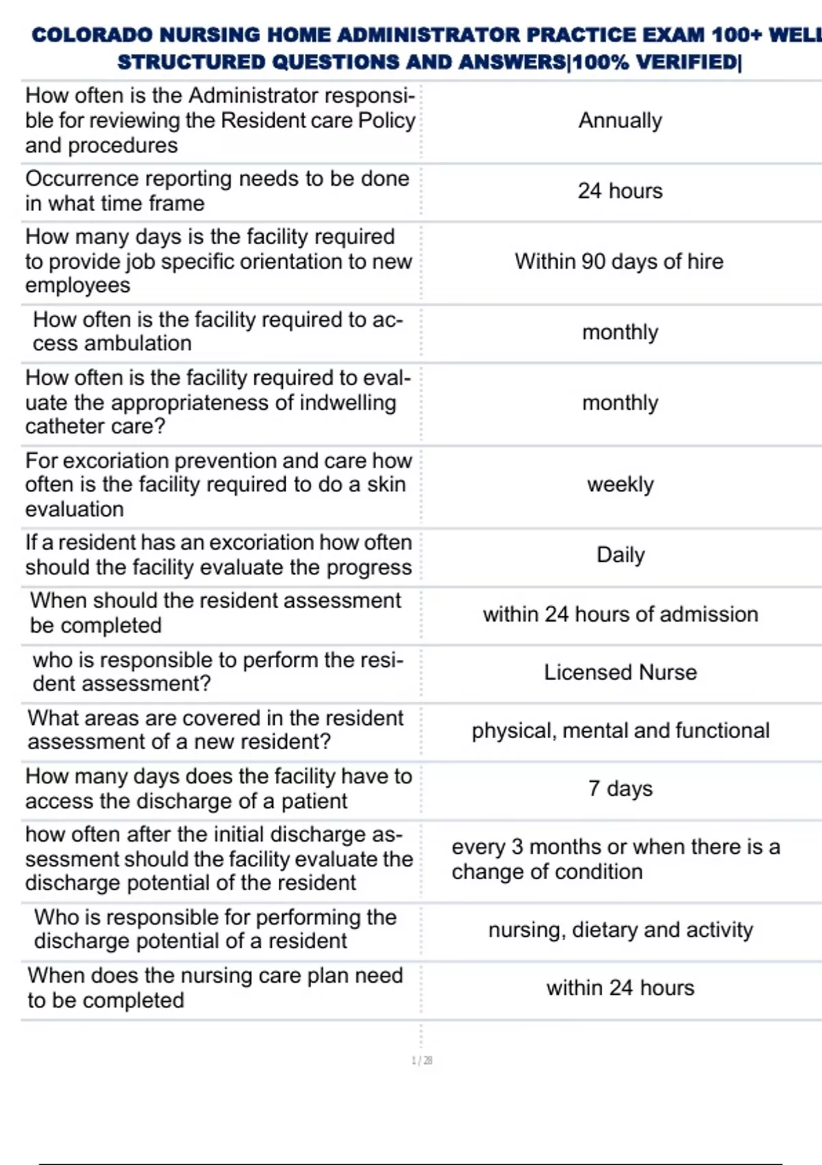 ,COLORADO NURSING HOME ADMINISTRATOR PRACTICE EXAM 100+ WELL