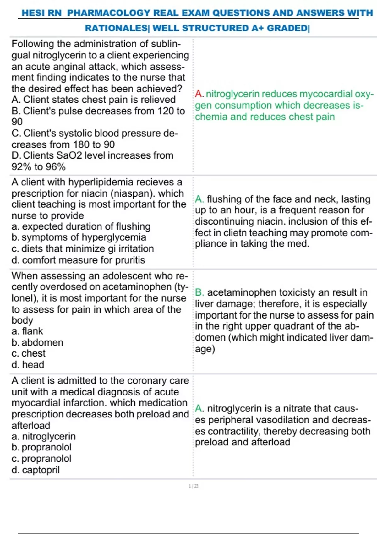 , HESI RN PHARMACOLOGY REAL EXAM QUESTIONS AND ANSWERS WITH