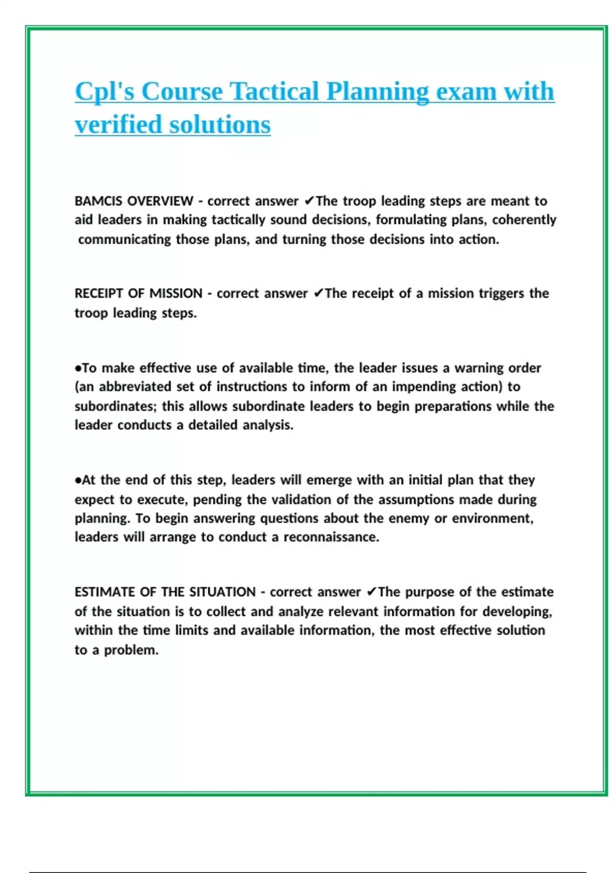BAMCIS OVERVIEW - correct answer ✔The troop leading steps are meant to