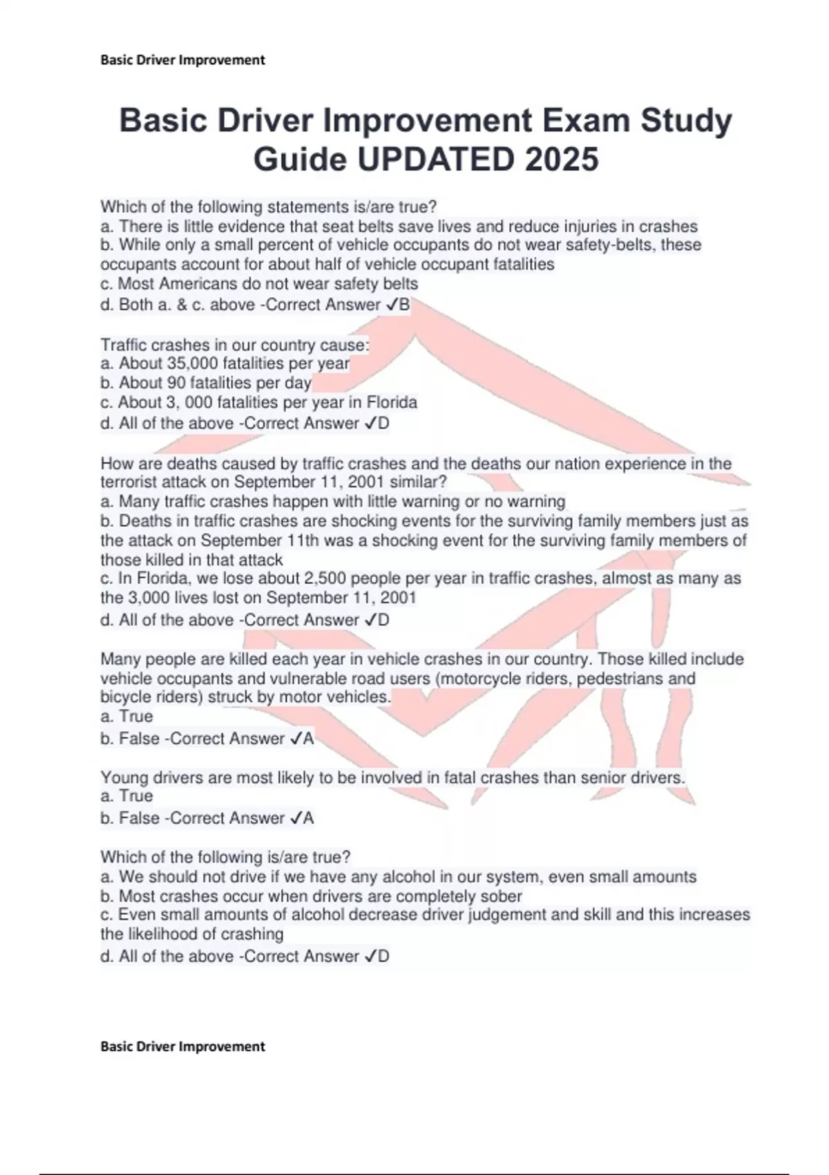 Basic Driver Improvement Exam Study Guide UPDATED 2025