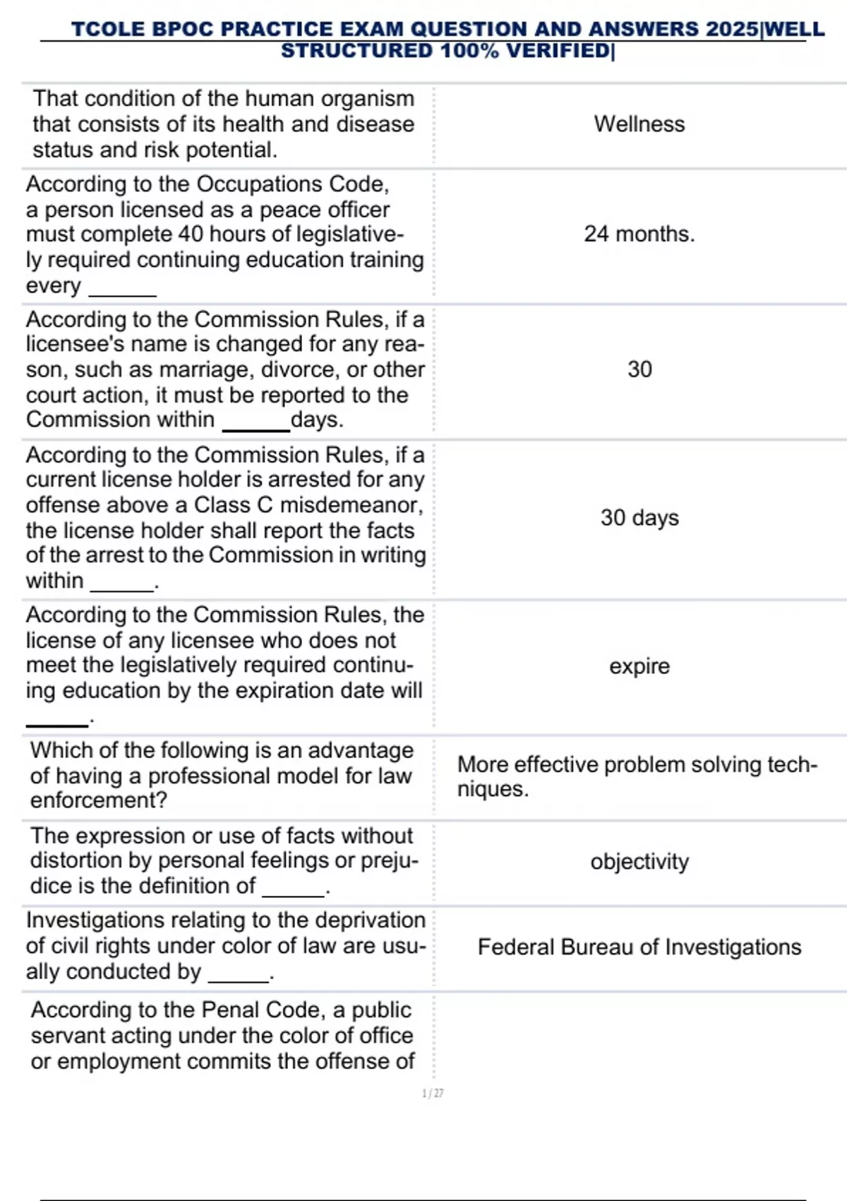 , TCOLE BPOC PRACTICE EXAM QUESTION AND ANSWERS 2025|WELL