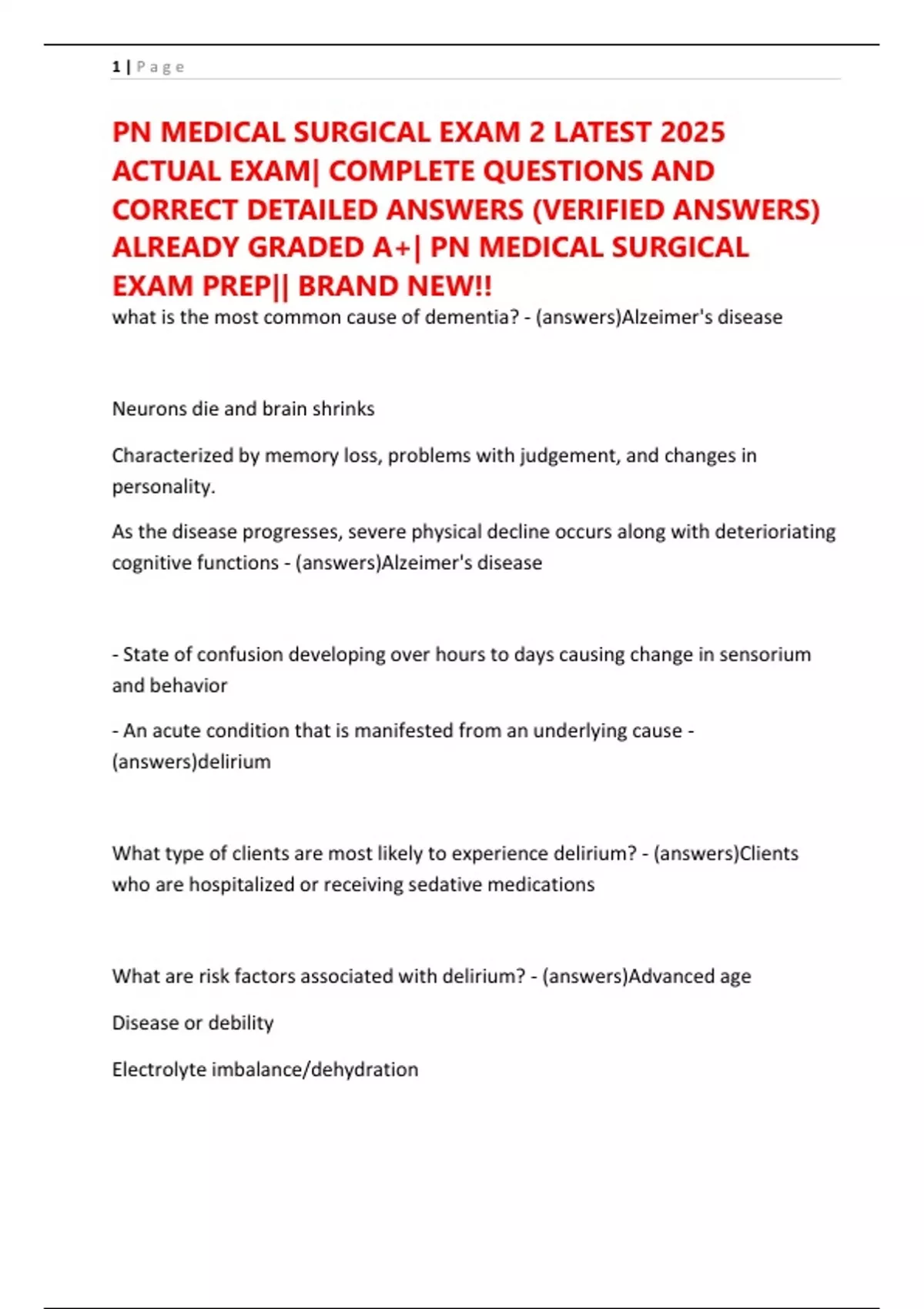 ALREADY GRADED A+| PN MEDICAL SURGICAL