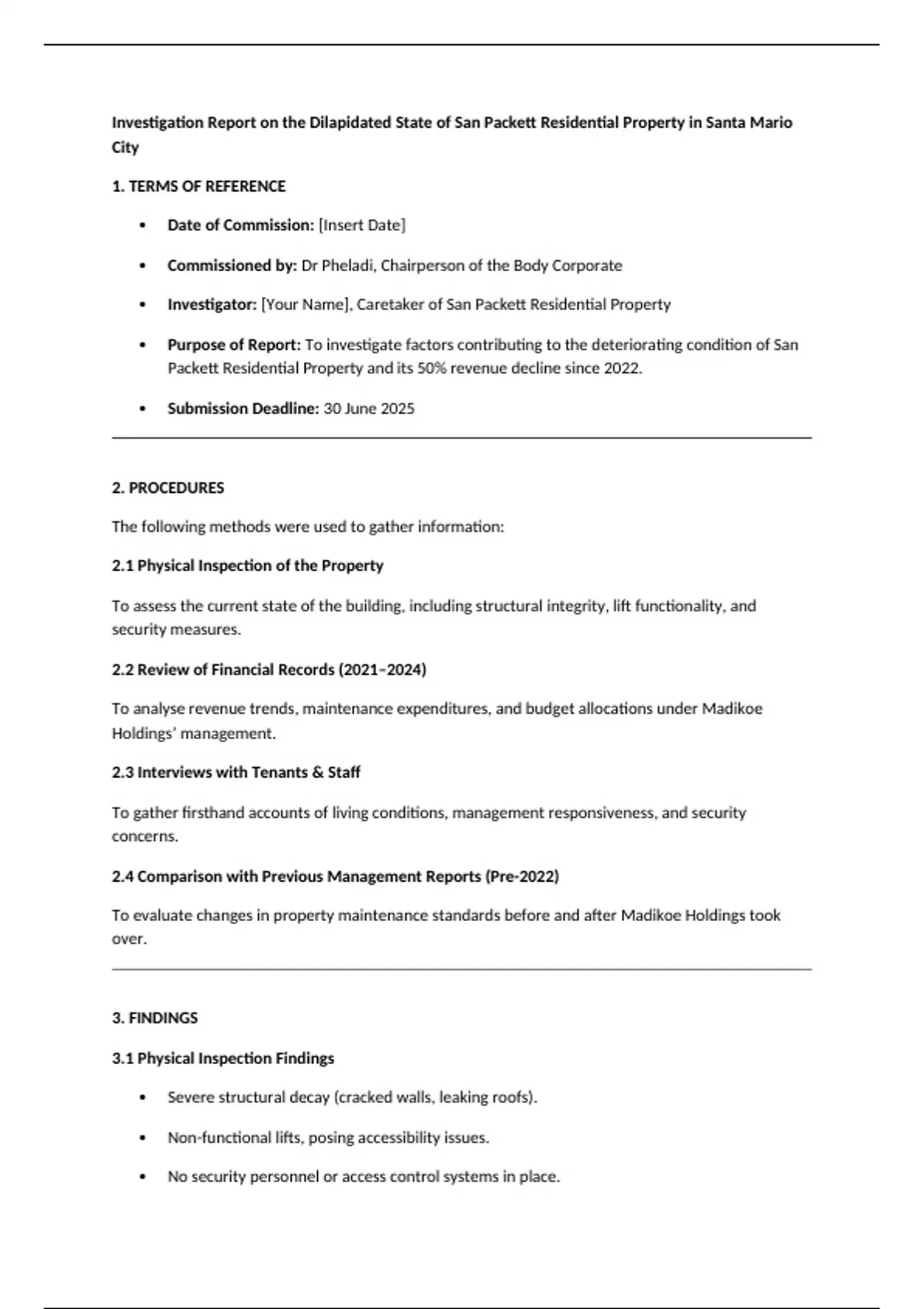  Commissioned by: Dr Pheladi, Chairperson of the Body Corporate