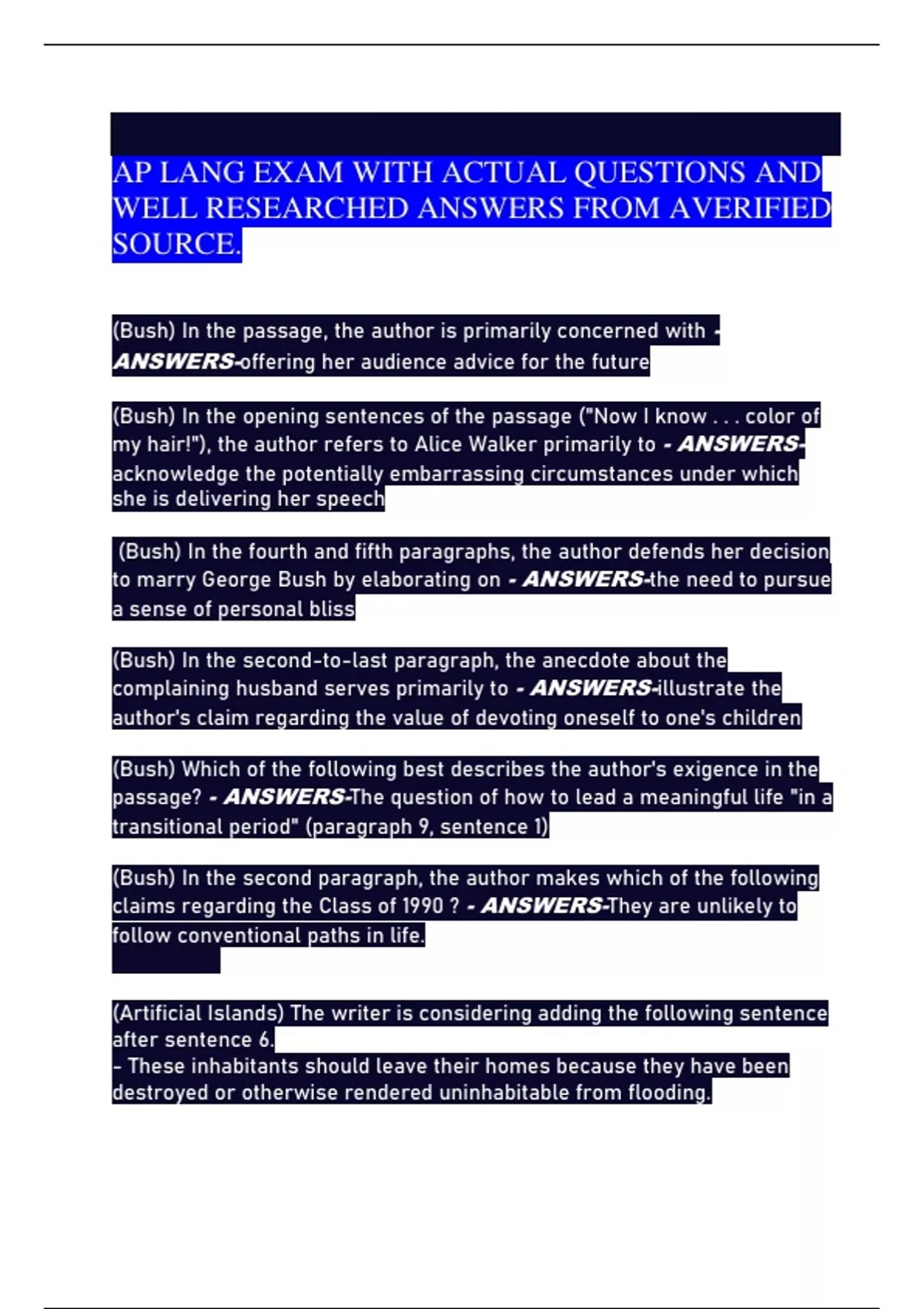 AP LANG EXAM WITH ACTUAL QUESTIONS AND
