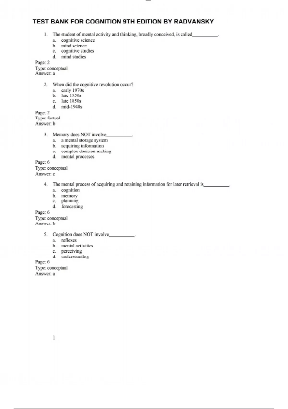 TEST BANK FOR COGNITION 9TH EDITION BY RADVANSKY
