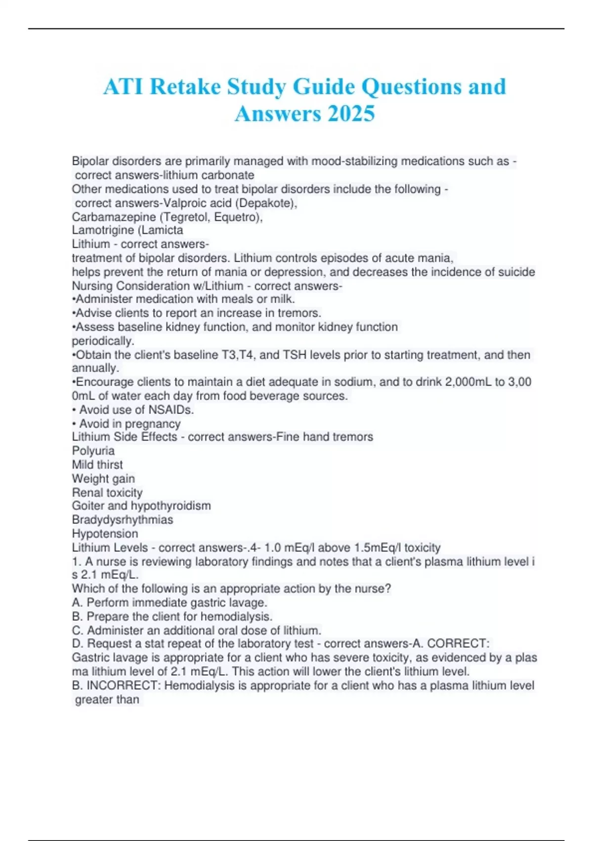 NursingAConsiderationAw/LithiumA-AcorrectAanswers-