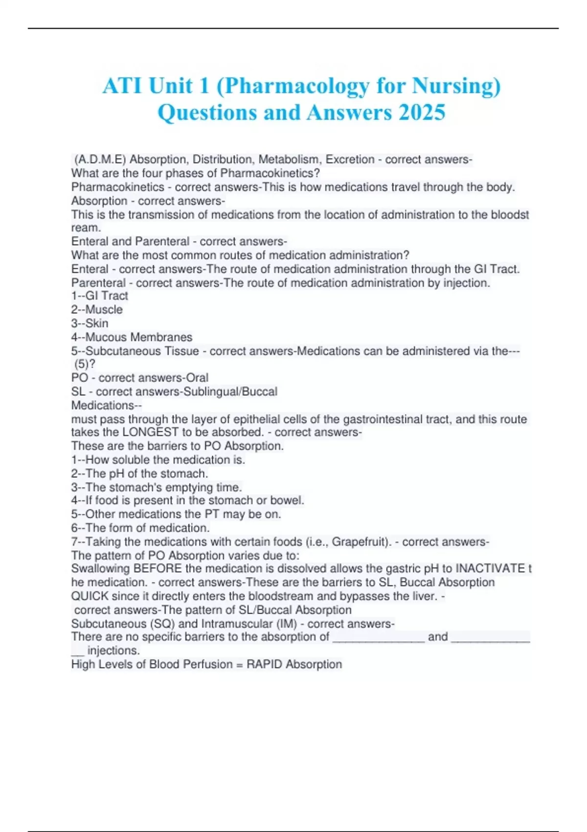 ATI Unit 1 (Pharmacology for Nursing) Questions and Answers 2025