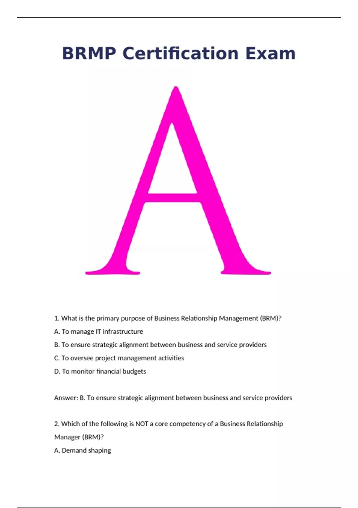 1. What is the primary purpose of Business Relationship Management (BRM)?