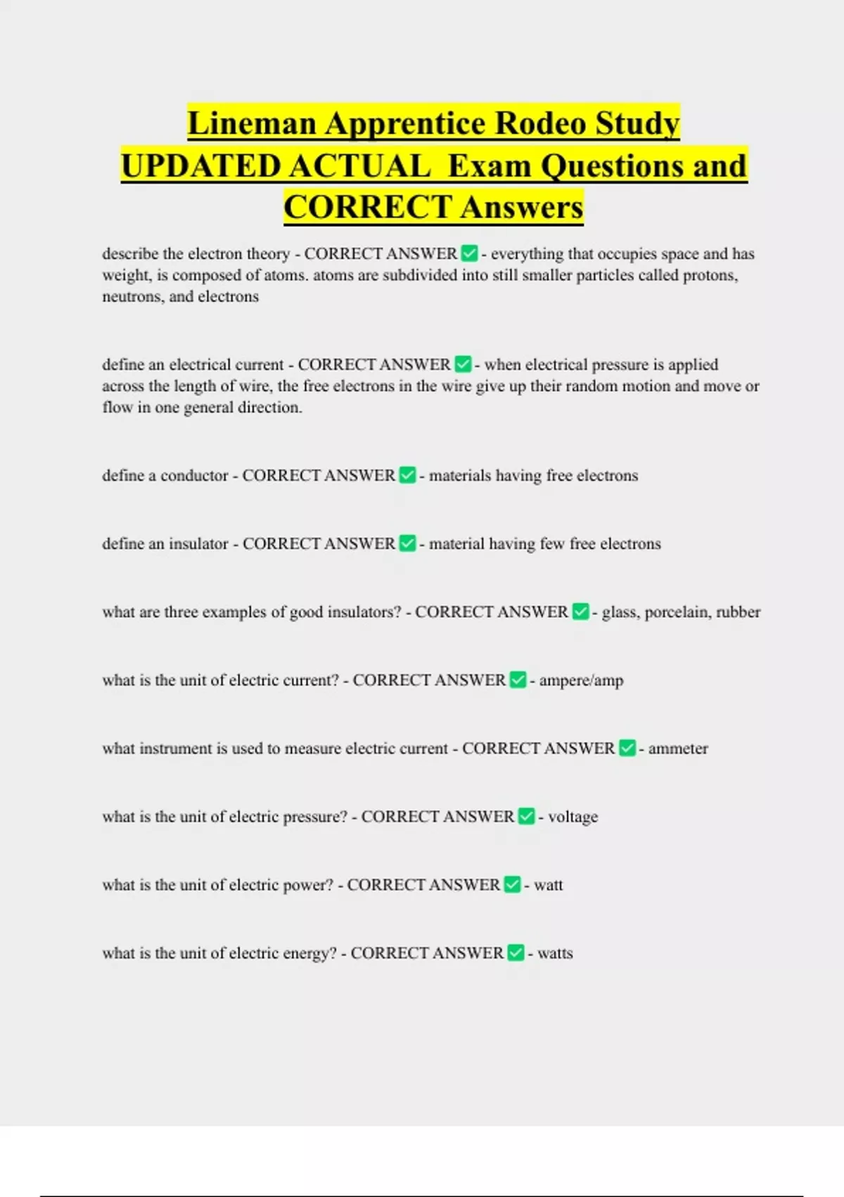CORRECT Answers