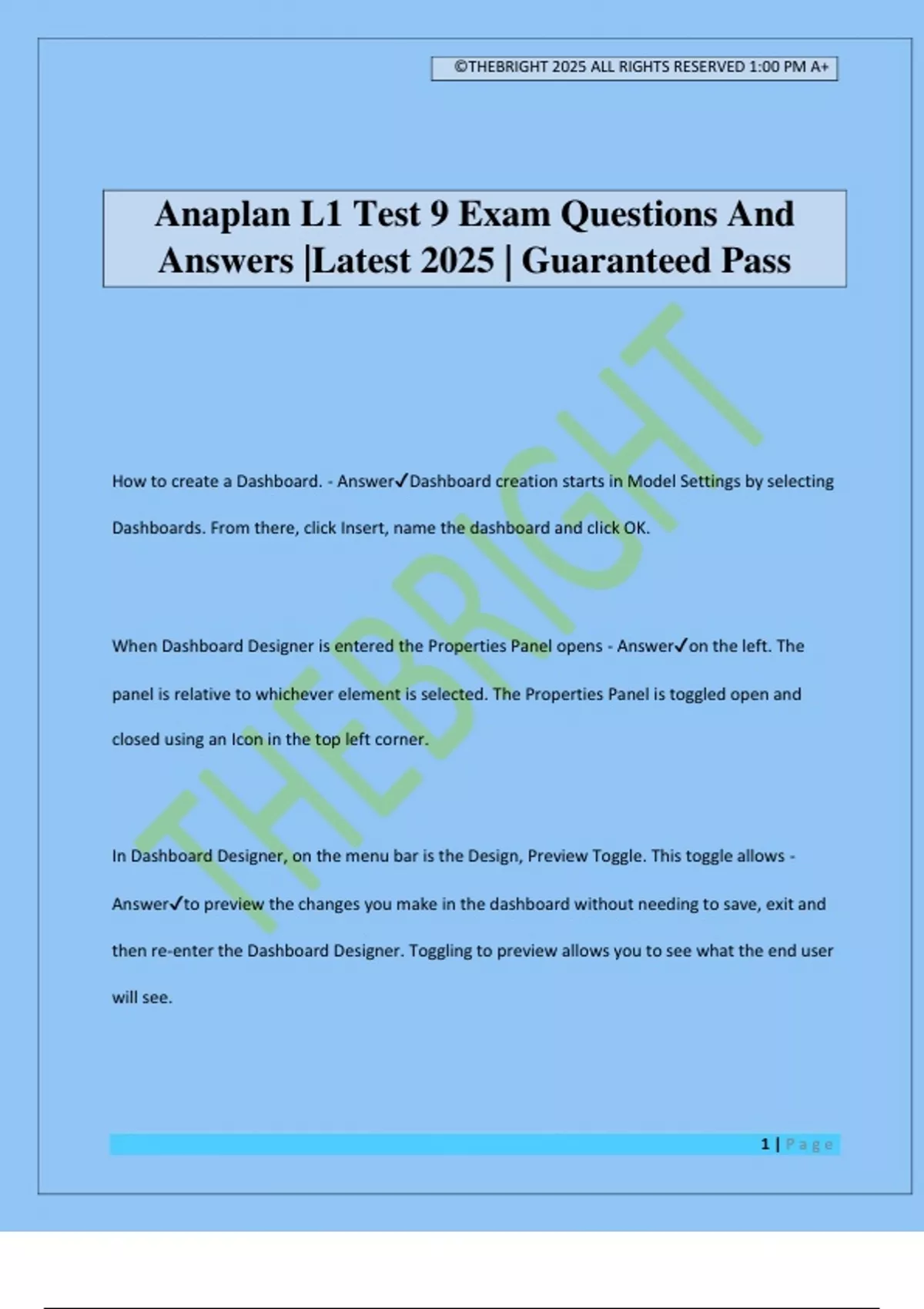 Anaplan L1 Test 9 Exam Questions And
