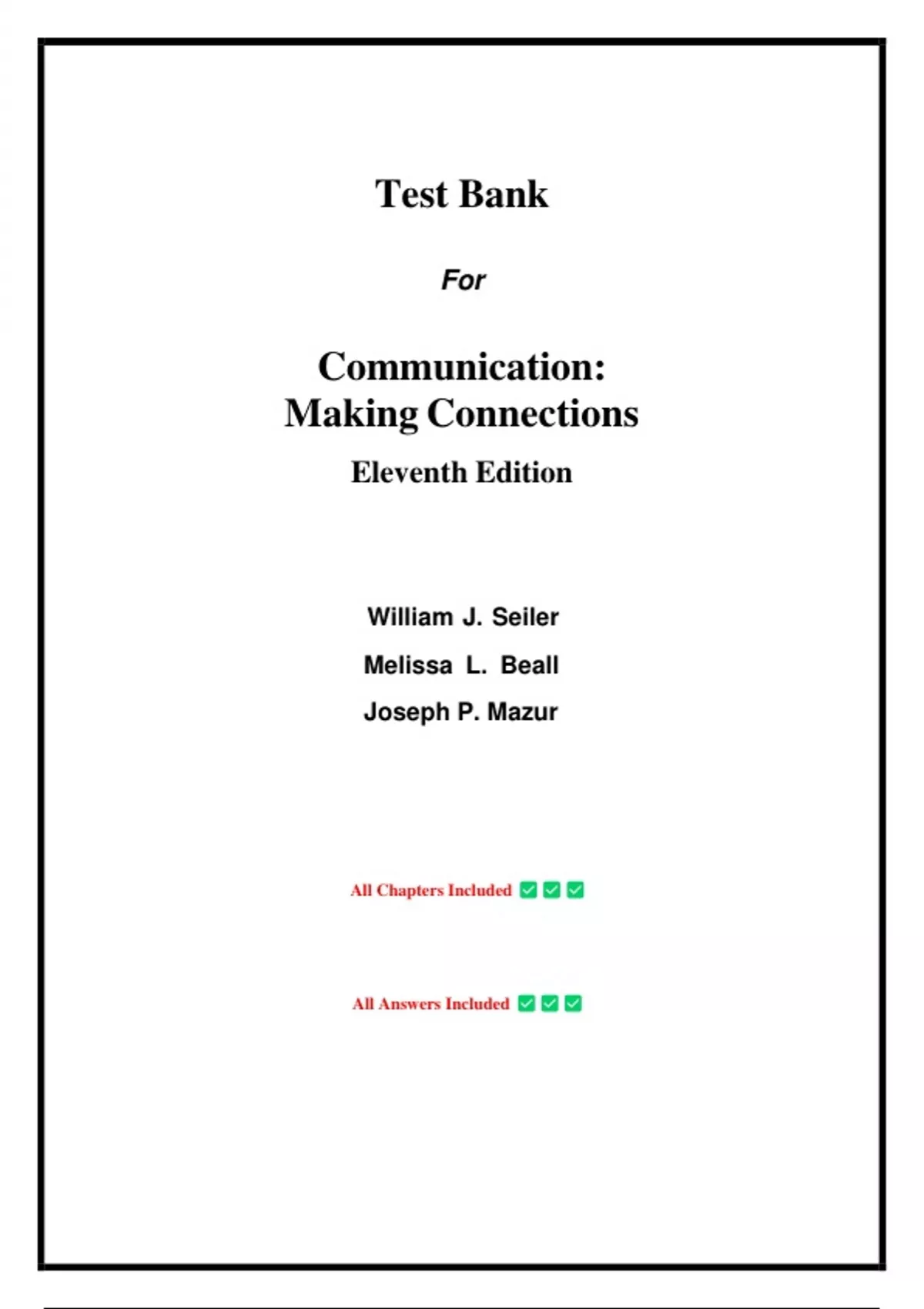 Test Bank for Communication: Making Connections 11th Edition by William J. Seiler, Chapter 1-15