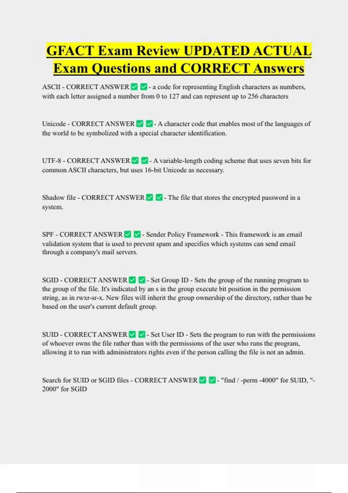 Exam Questions and CORRECT Answers