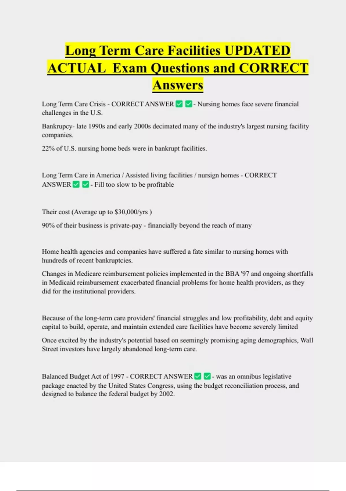 Long Term Care Crisis - CORRECT ANSWER - Nursing homes face severe financial