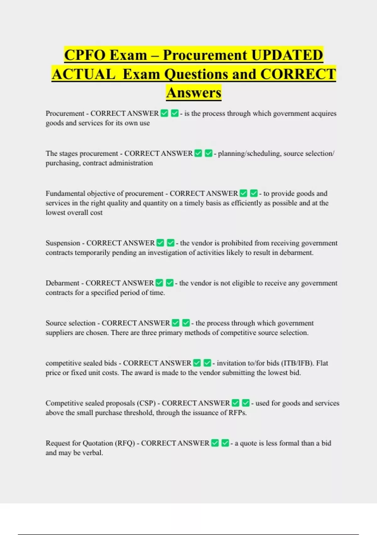 Fundamental objective of procurement - CORRECT ANSWER - to provide goods and