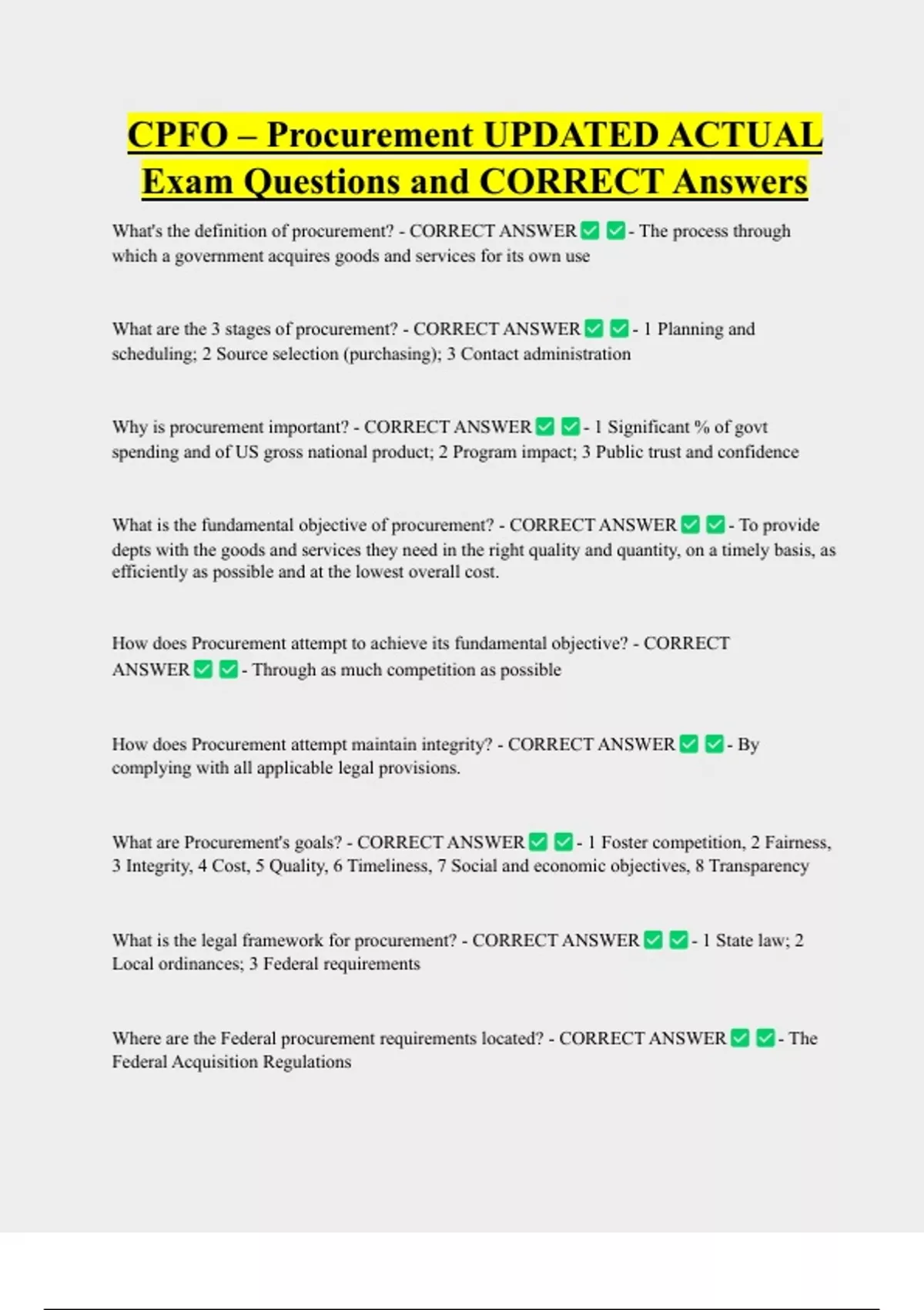 CPFO – Procurement UPDATED ACTUAL Exam Questions and CORRECT Answers