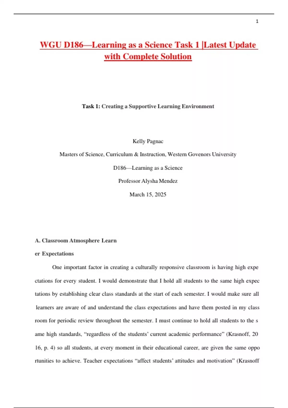 WGU D186—Learning as a Science Task 1 |Latest Update
