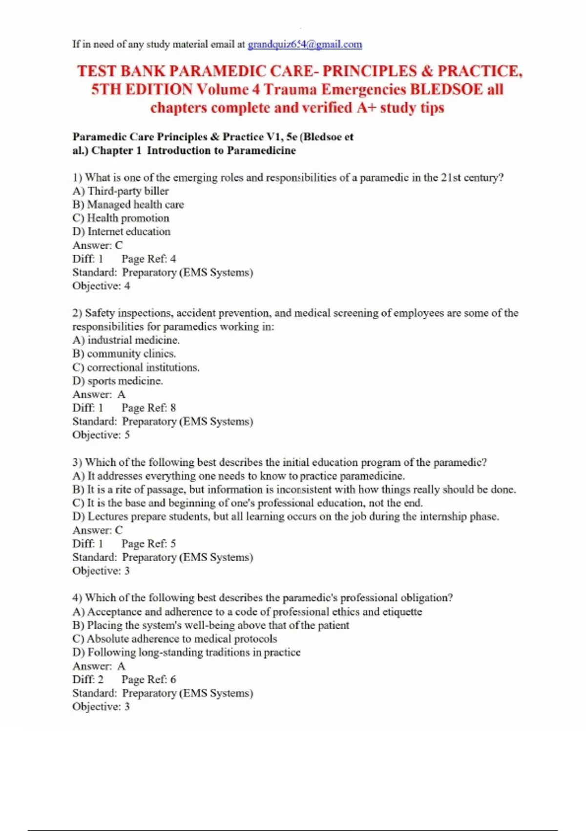 TEST BANK PARAMEDIC CARE- PRINCIPLES & PRACTICE,5th edition volume 4 trauma and emergencies bledsoe all chapters 9780134449746TEST BANK PARAMEDIC CARE- PRINCIPLES & PRACTICE,5th edition volume 4 trauma and emergencies bledsoe all chapters 9780134449746TEST BANK PARAMEDIC CARE- PRINCIPLES & PRACTICE,5th edition volume 4 trauma and emergencies bledsoe all chapters 9780134449746TEST BANK PARAMEDIC CARE- PRINCIPLES & PRACTICE,5th edition volume 4 trauma and emergencies bledsoe all chapters 9780134449746