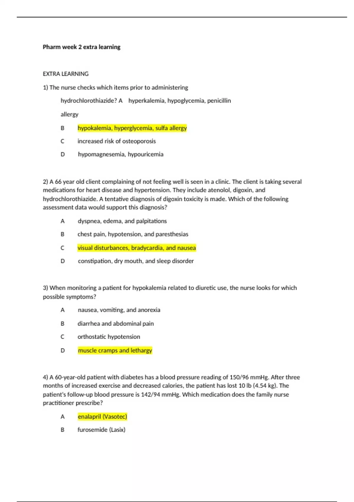 2) A 66 year old client complaining of not feeling well is seen in a clinic. The client is taking several