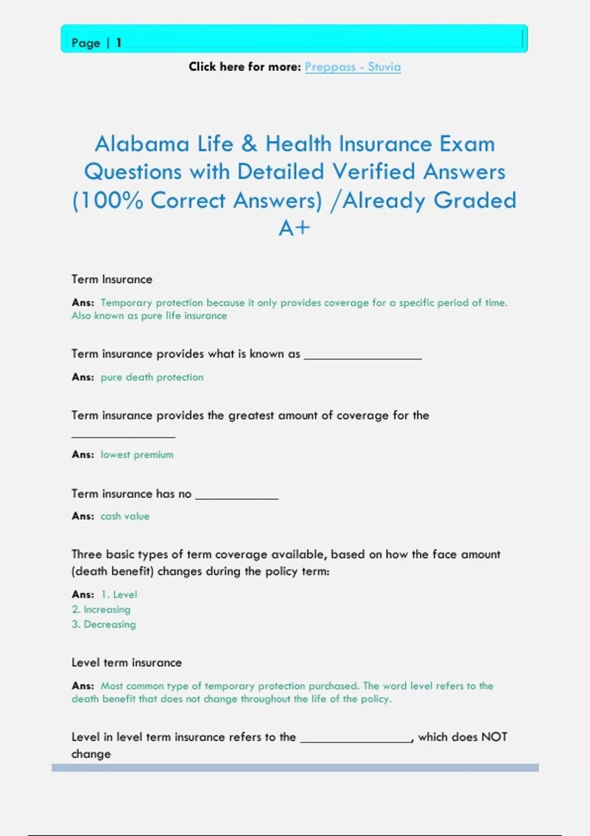 Ans: the purest form of term insurance. The death benefit remains level, and the policy may