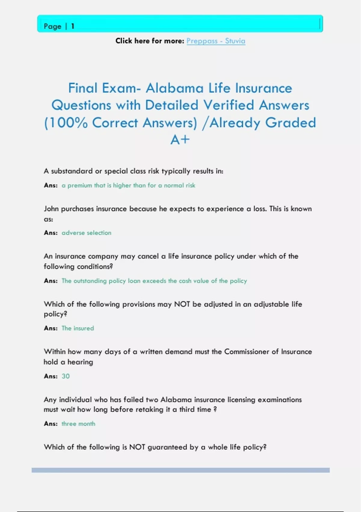 Final Exam- Alabama Life Insurance