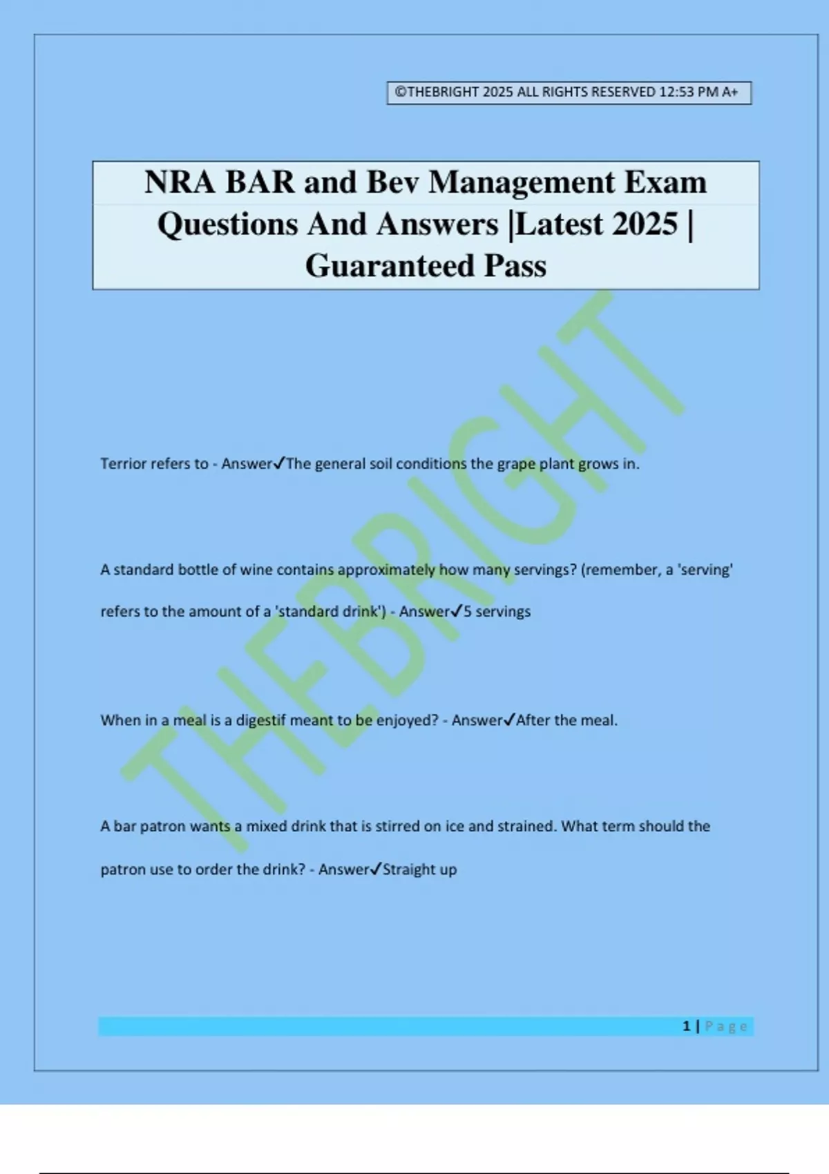 NRA BAR and Bev Management Exam