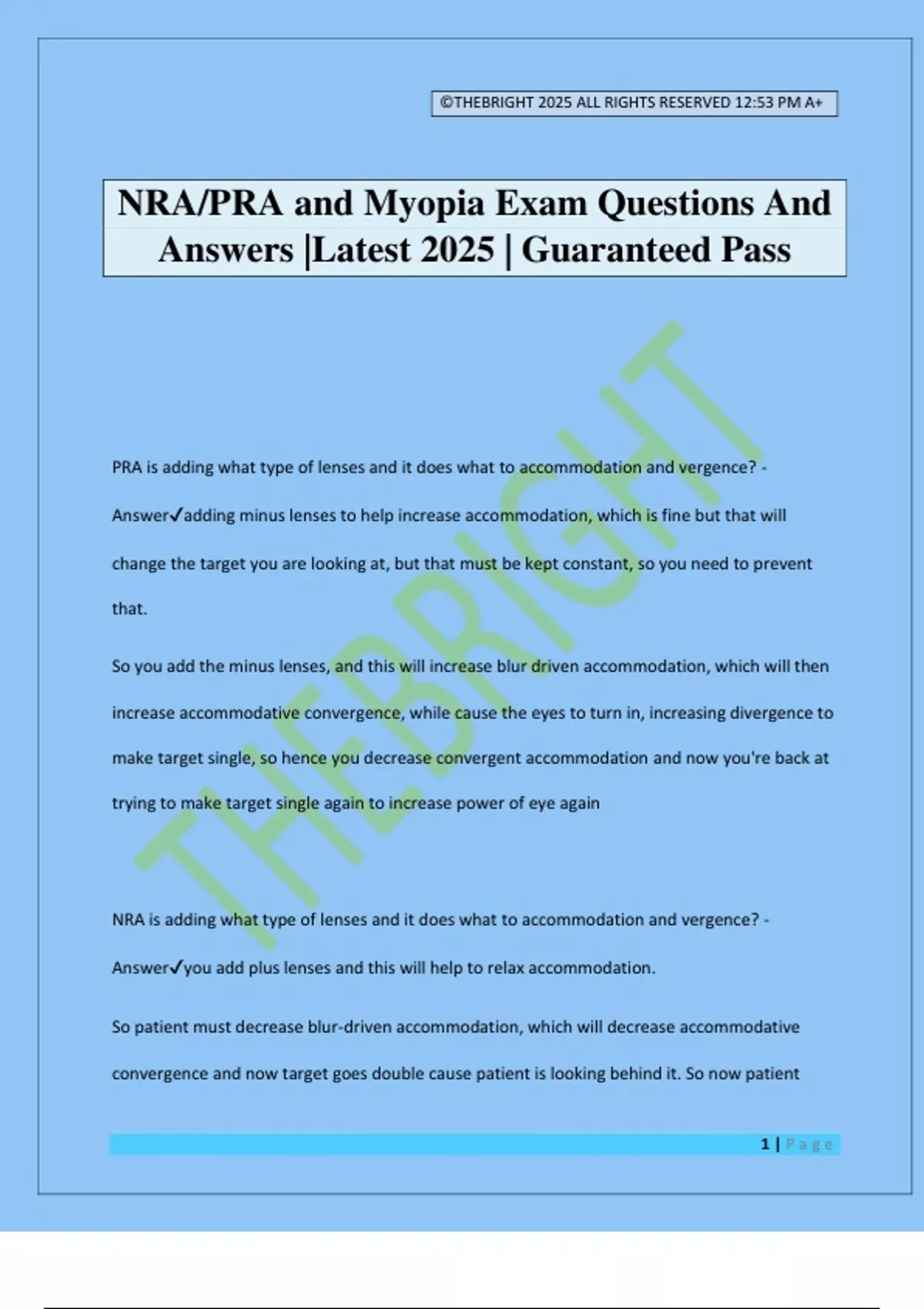 Normal values for NRA/PRA when patient is less than 30 years old! - Answer✔+2.00 and