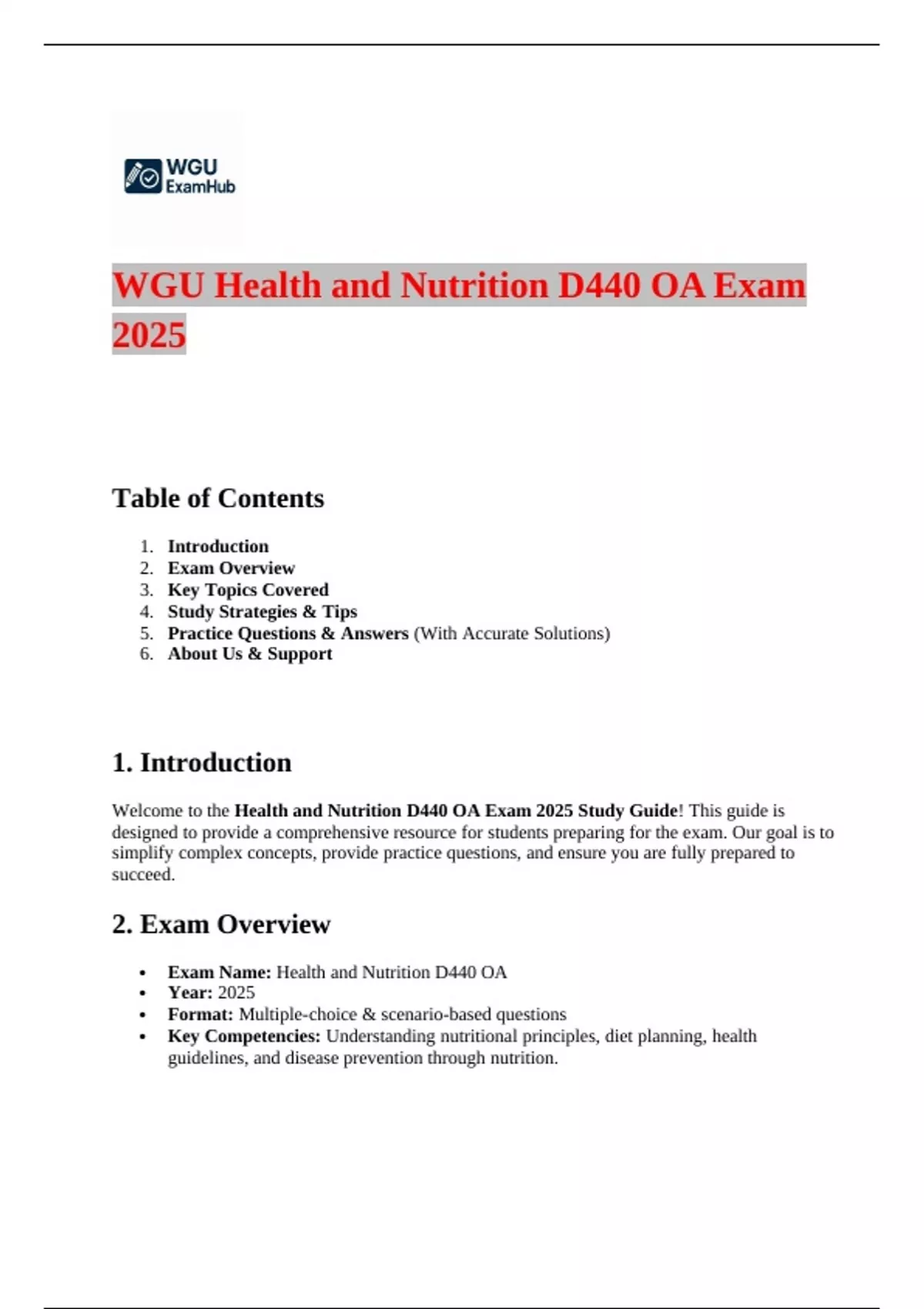Welcome to the Health and Nutrition D440 OA Exam 2025 Study Guide! This guide is