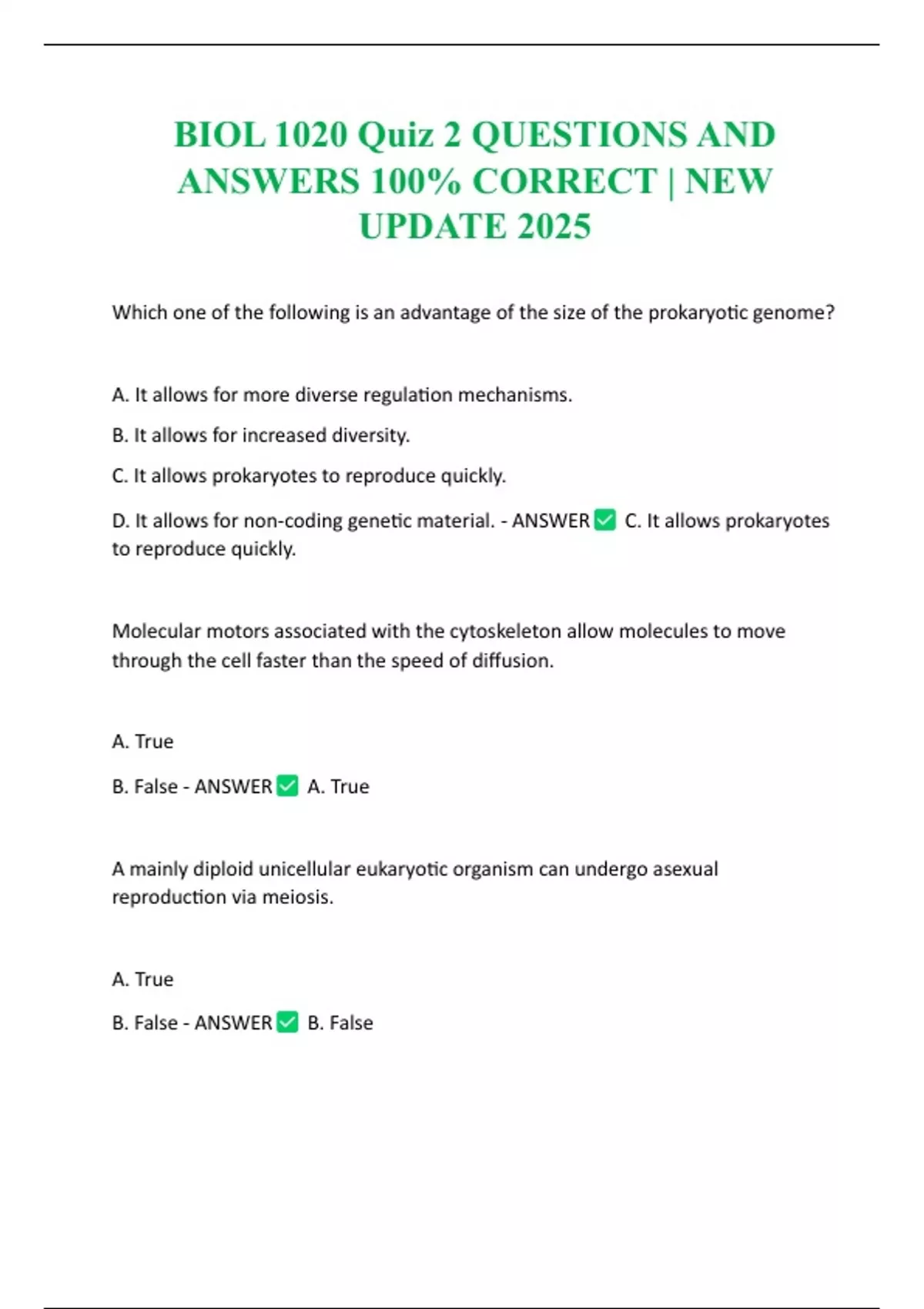 BIOL 1020 Quiz 2 QUESTIONS AND