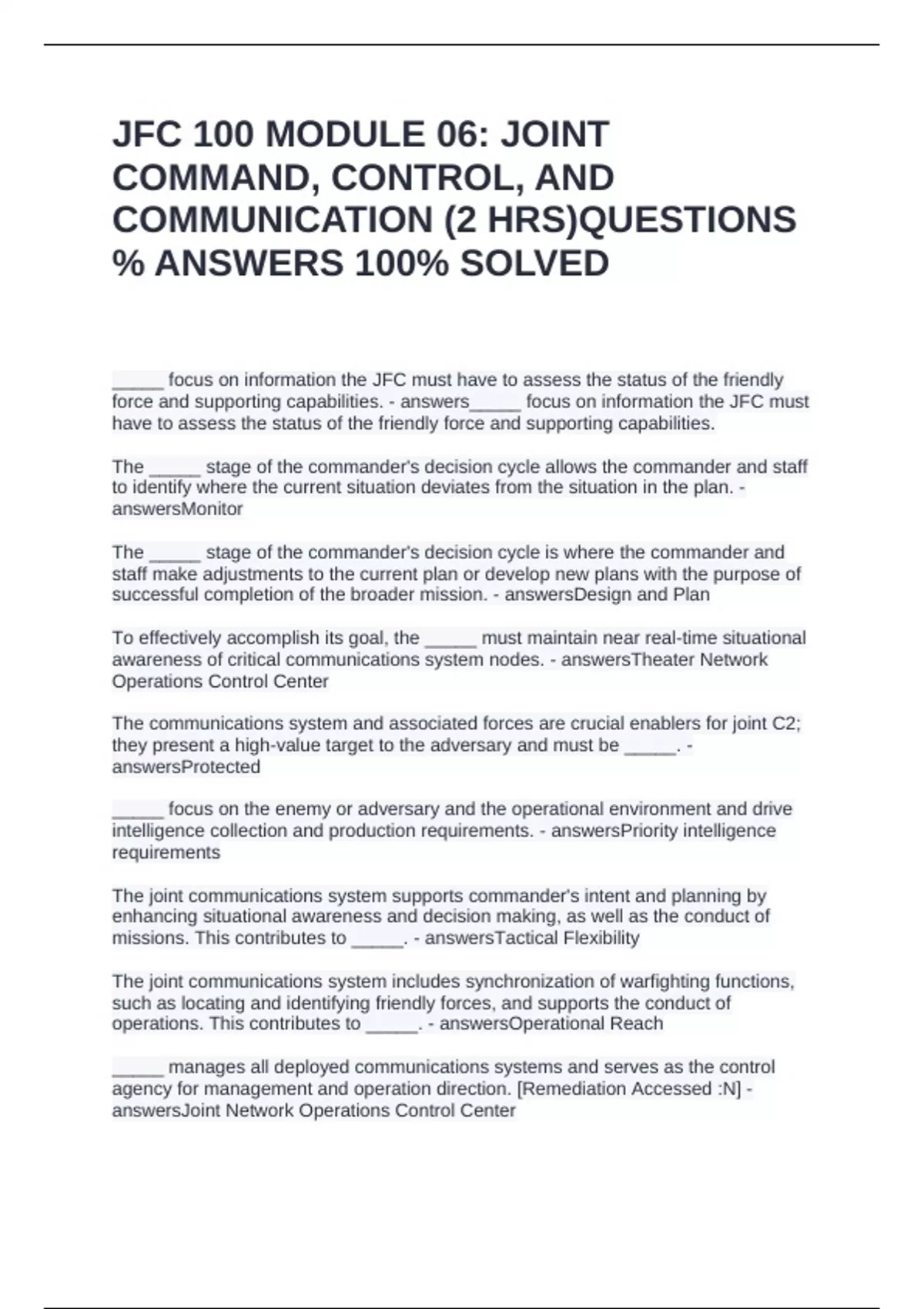 force and supporting capabilities. - answers_____ focus on information the JFC must