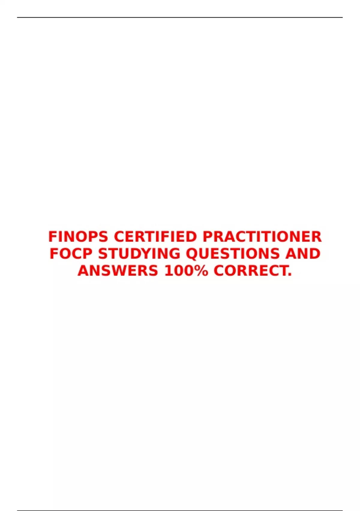 FINOPS CERTIFIED PRACTITIONER FOCP STUDYING QUESTIONS AND ANSWERS 100% CORRECT.