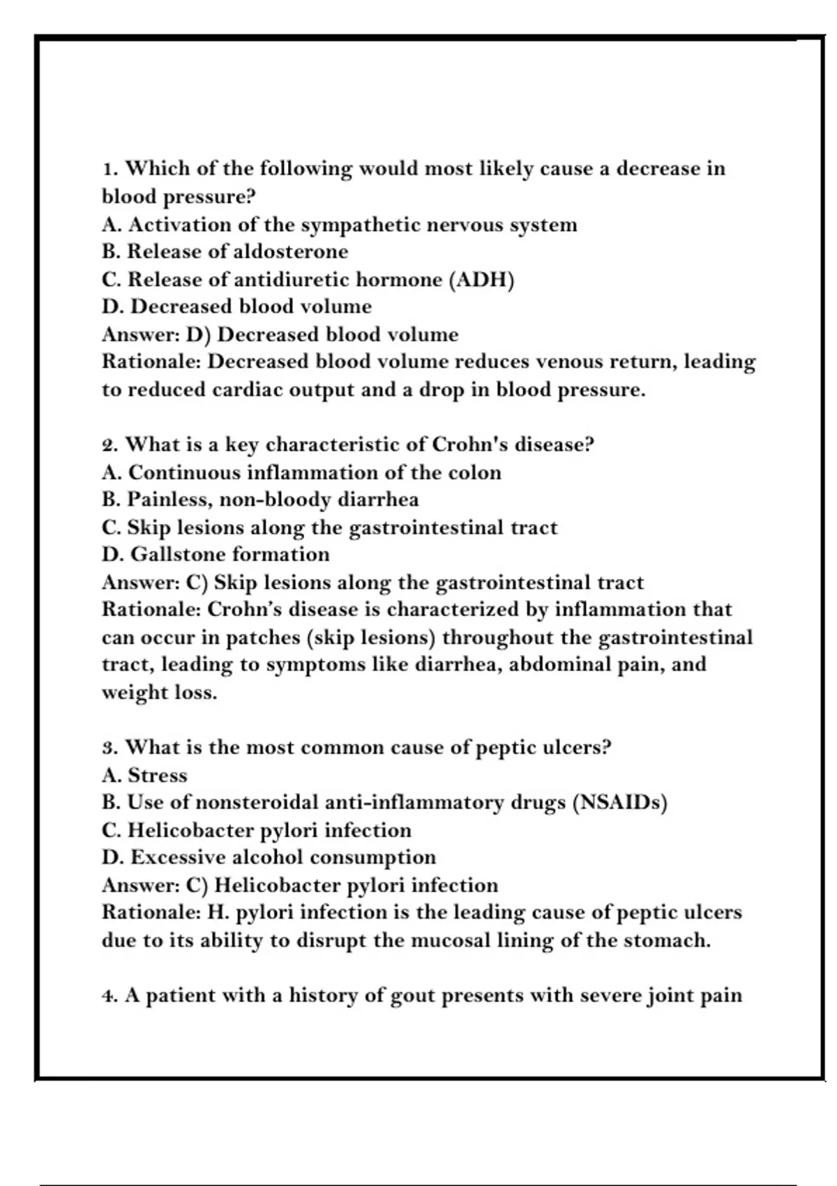 Rationale: Gout is caused by the accumulation of uric acid crystals