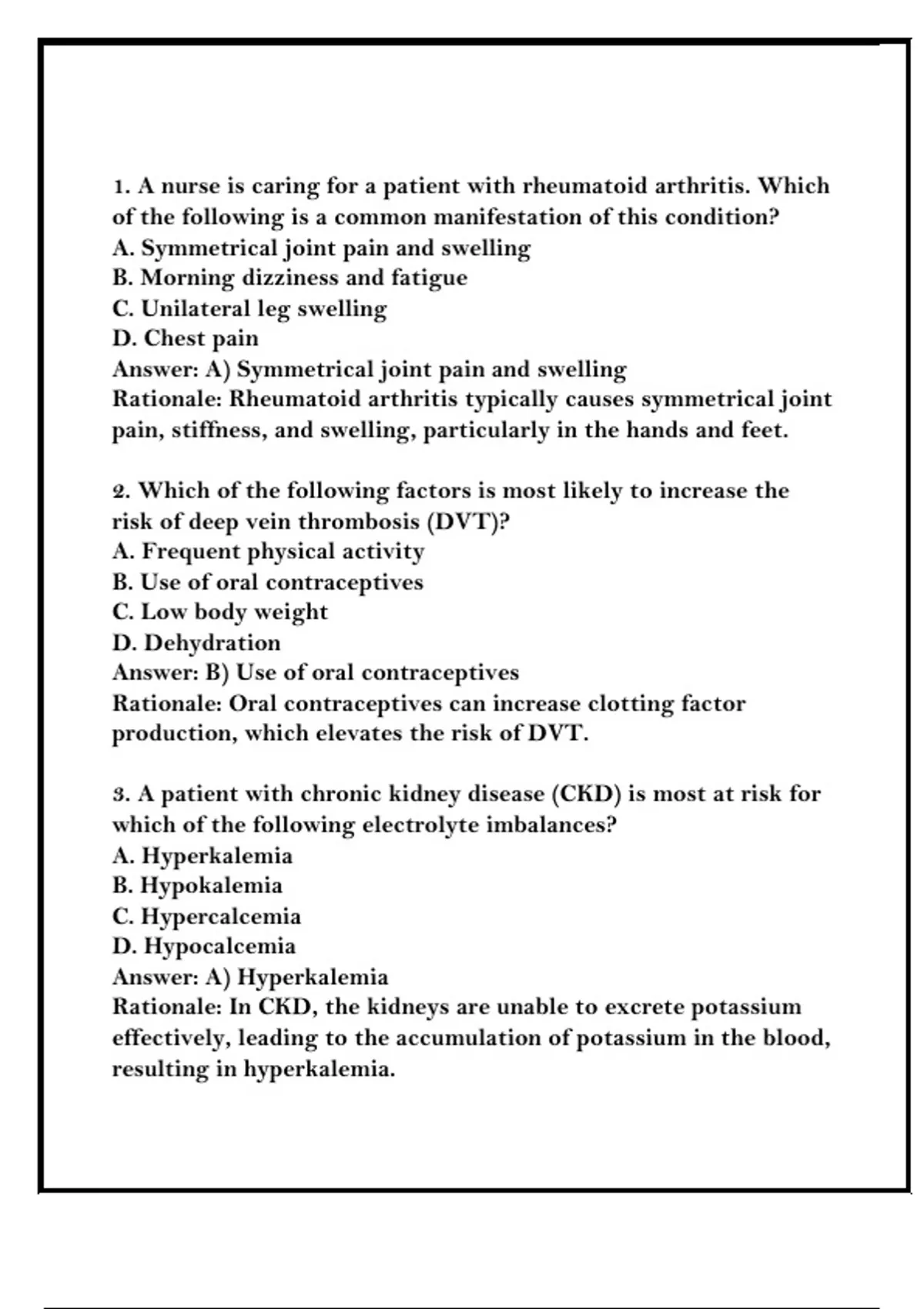 1. A nurse is caring for a patient with rheumatoid arthritis. Which
