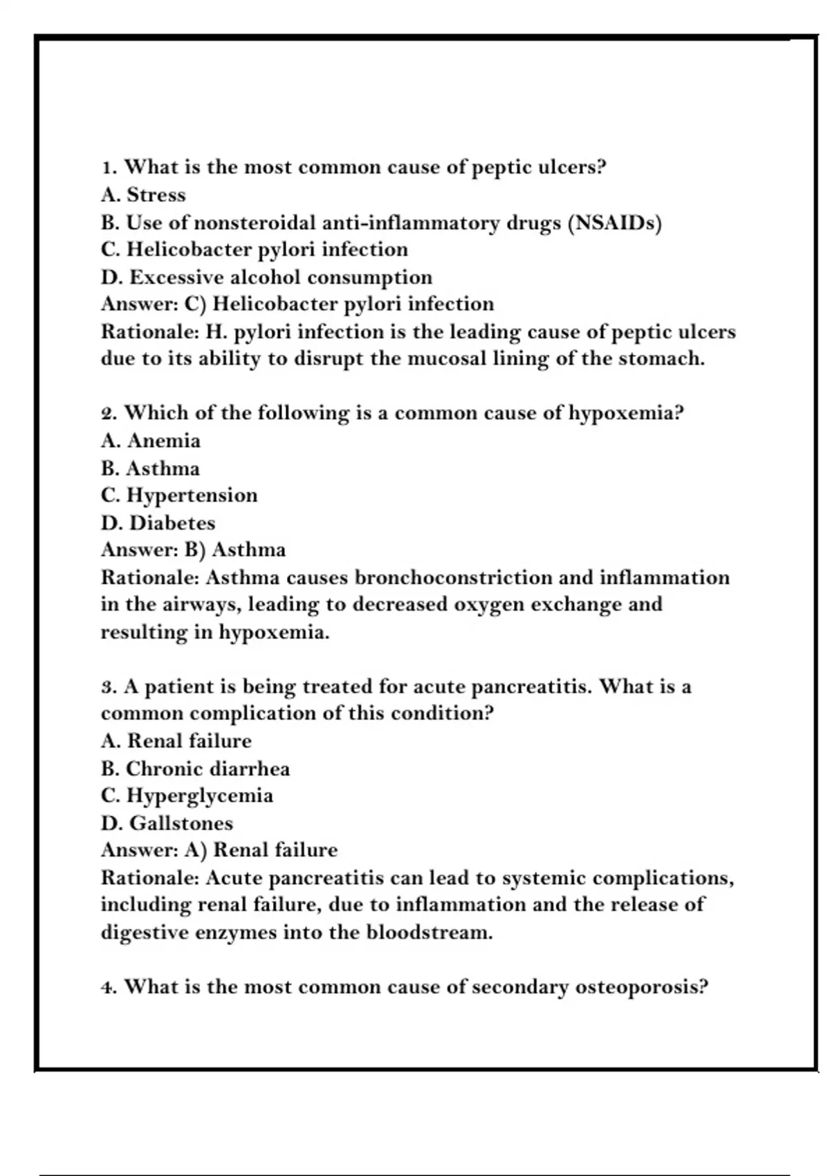 1. What is the most common cause of peptic ulcers?