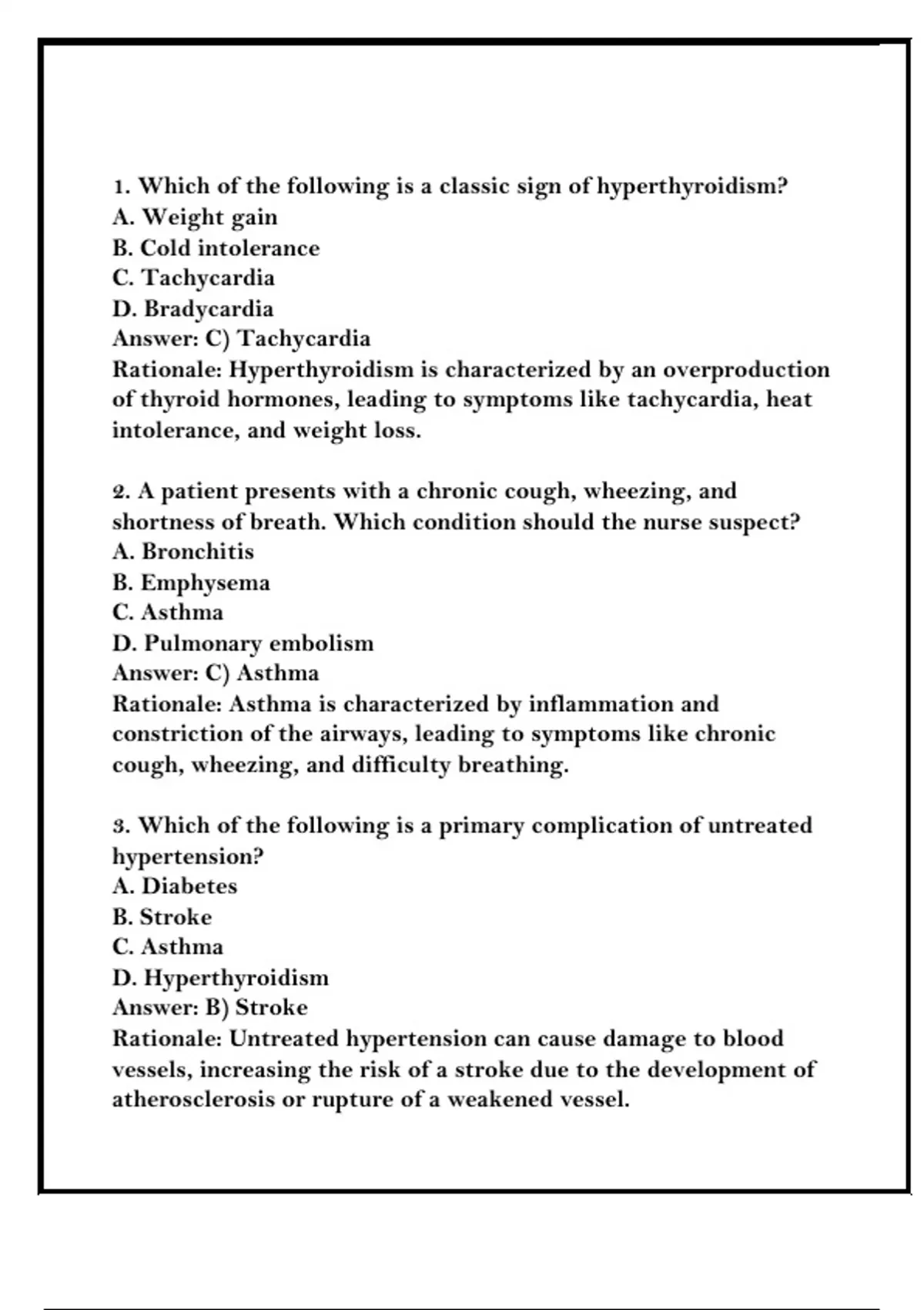 Rationale: Untreated hyperthyroidism can lead to tachycardia and