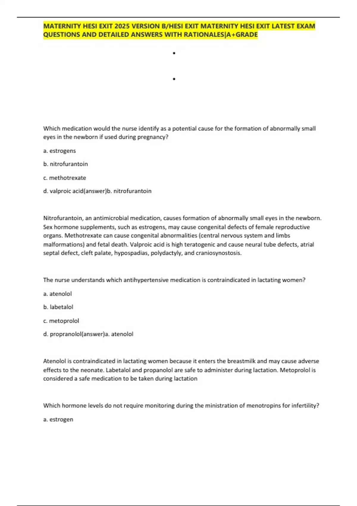 ,MATERNITY HESI EXIT 2025 VERSION B/HESI EXIT MATERNITY HESI EXIT LATEST EXAM