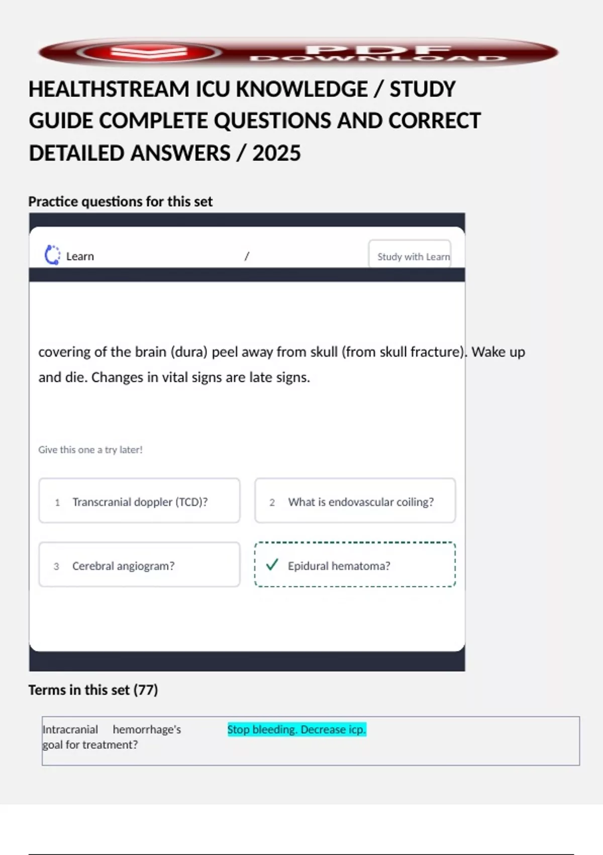 GUIDE COMPLETE QUESTIONS AND CORRECT