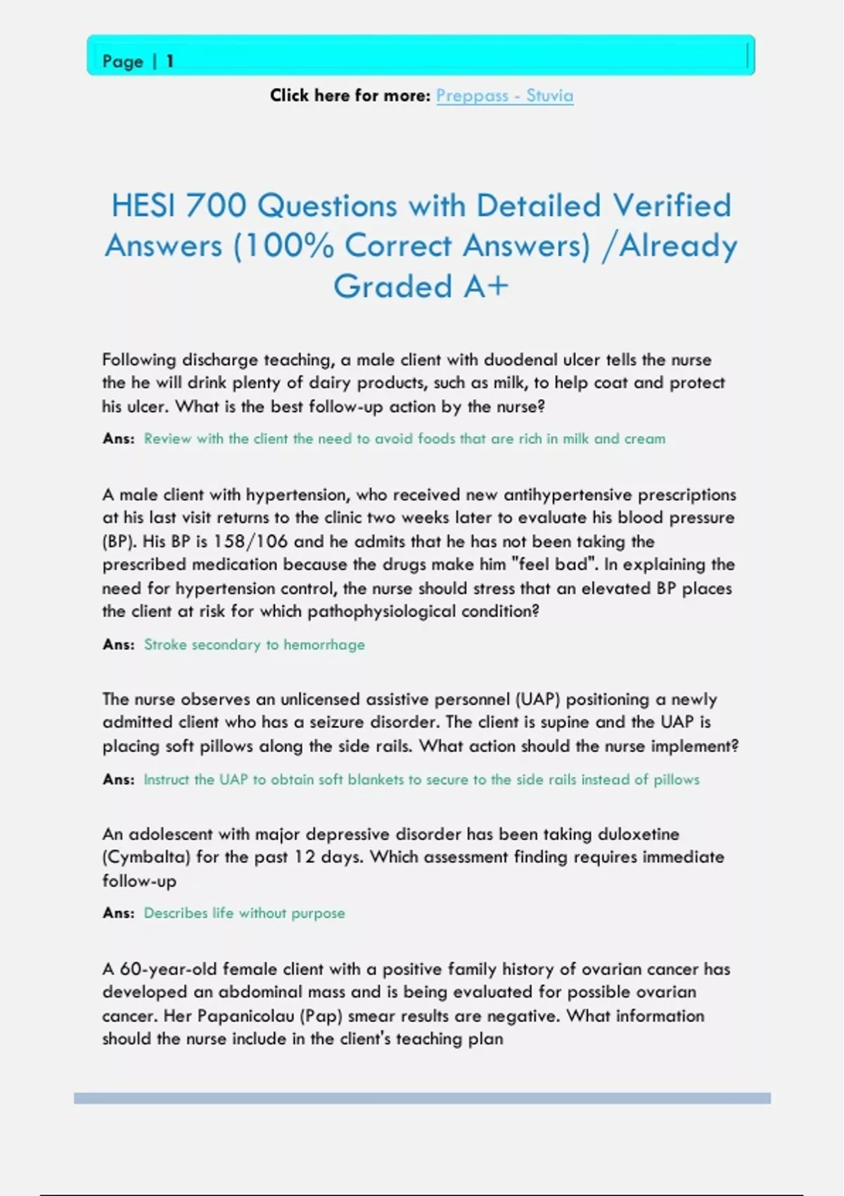 HESI 700 Questions with Detailed Verified Answers (100% Correct Answers) /Already Graded A+