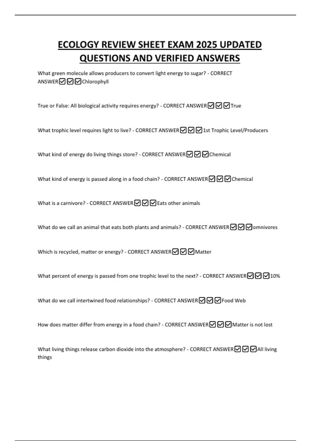 ECOLOGY REVIEW SHEET EXAM 2025 UPDATED